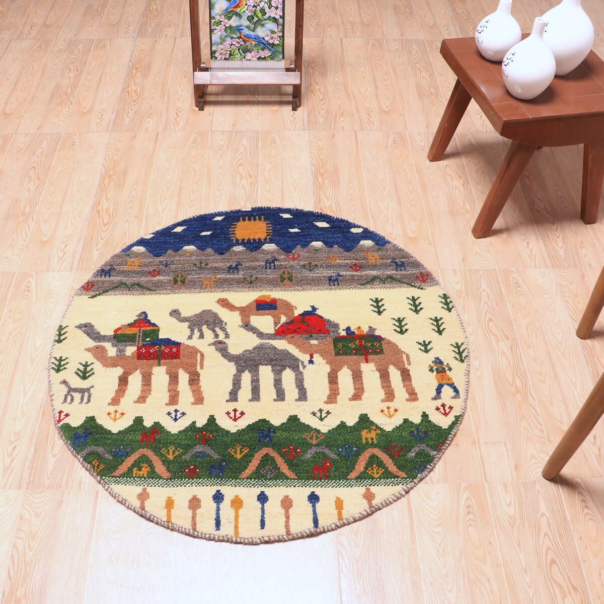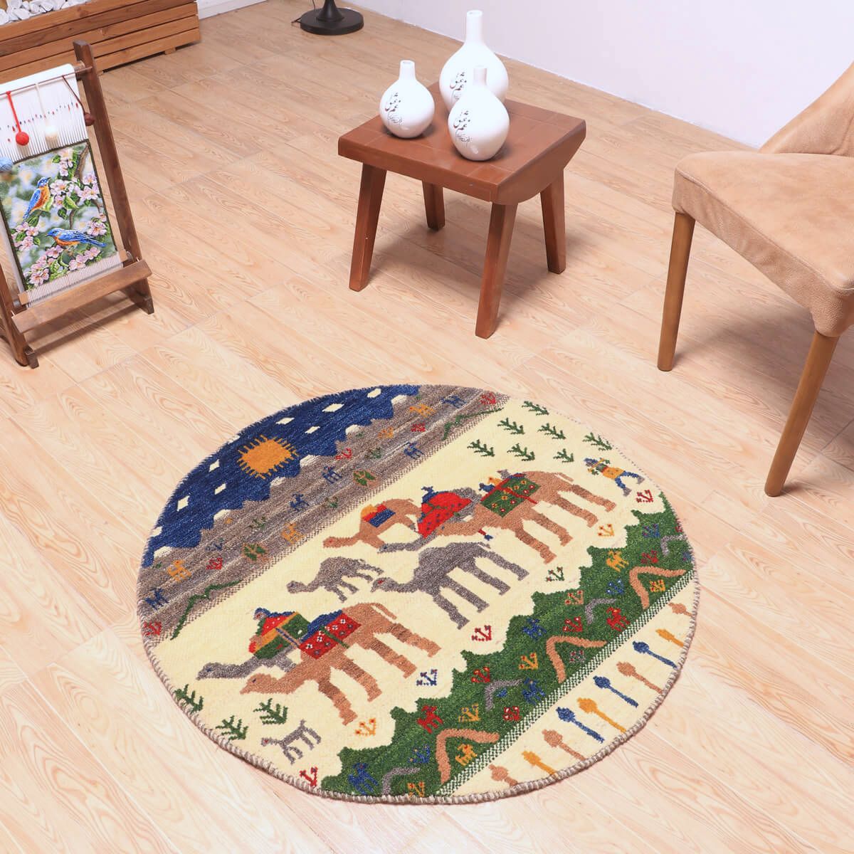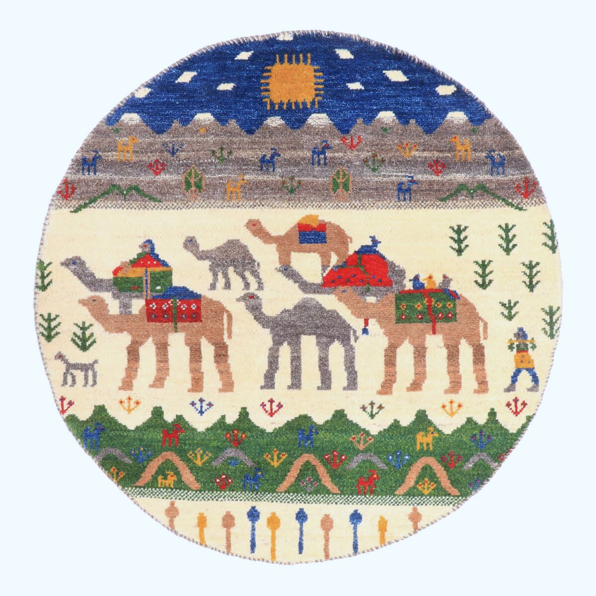 〜キャラバンの旅路を描いた丸型ミニラグ〜