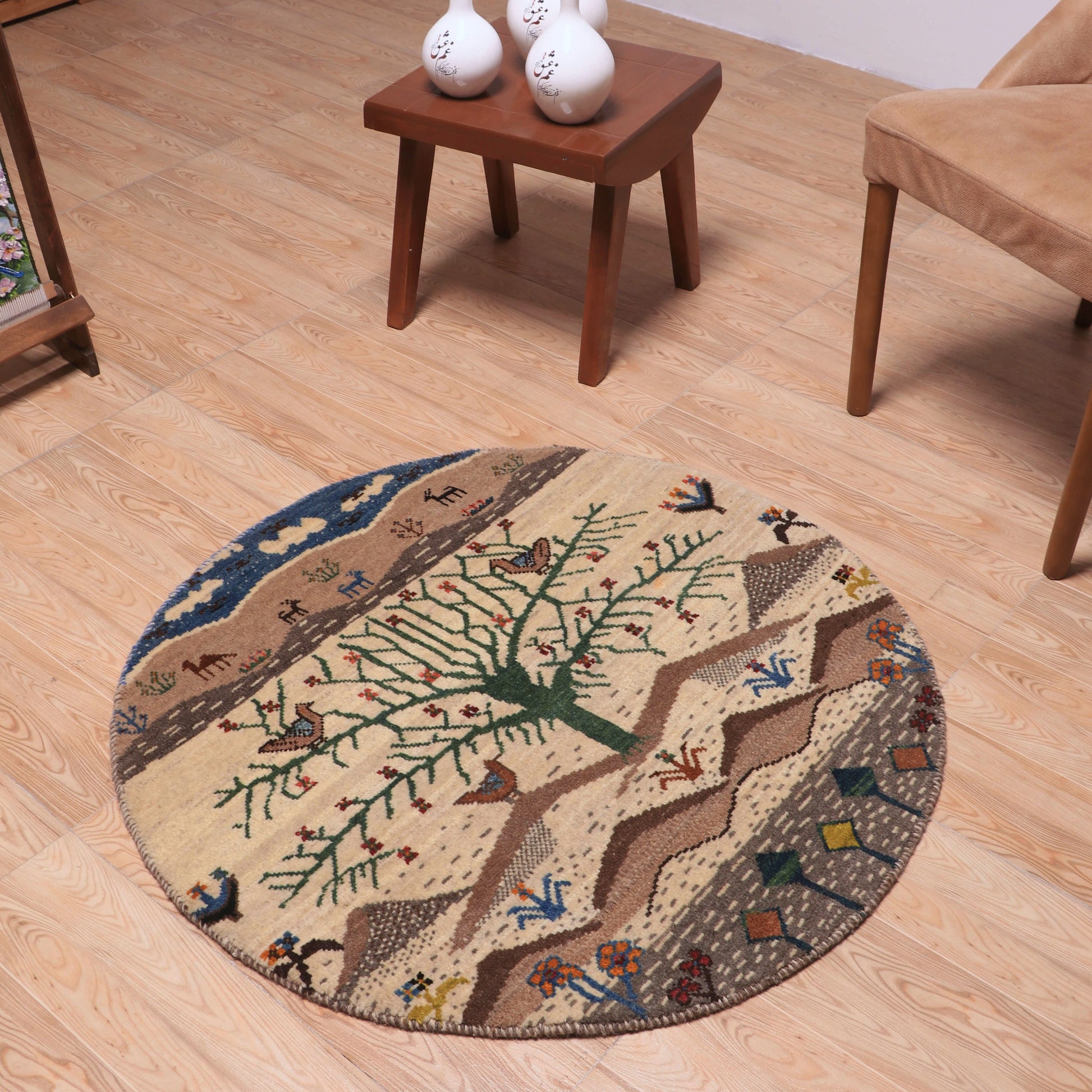 〜生命の樹と自然が広がる丸型アートラグ〜