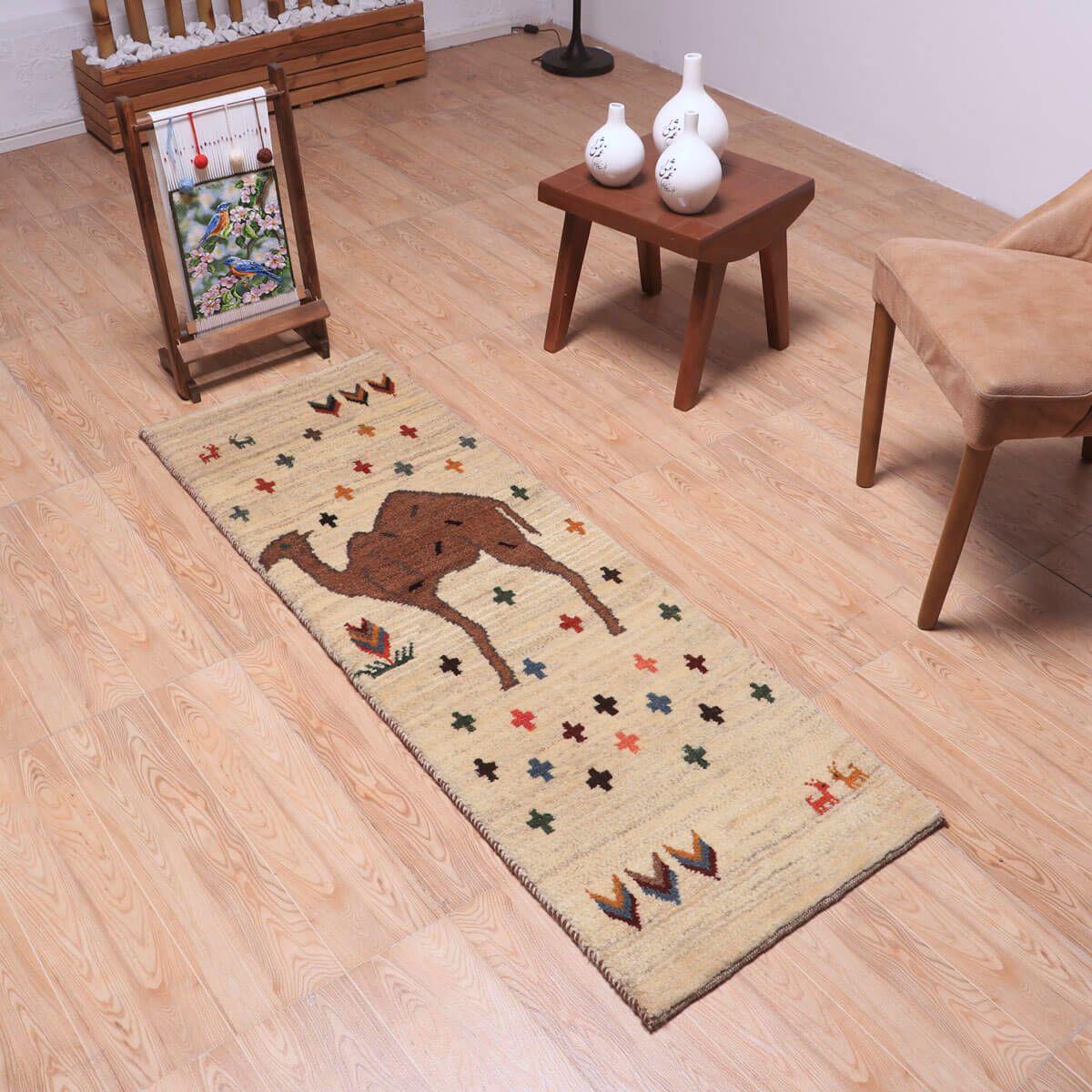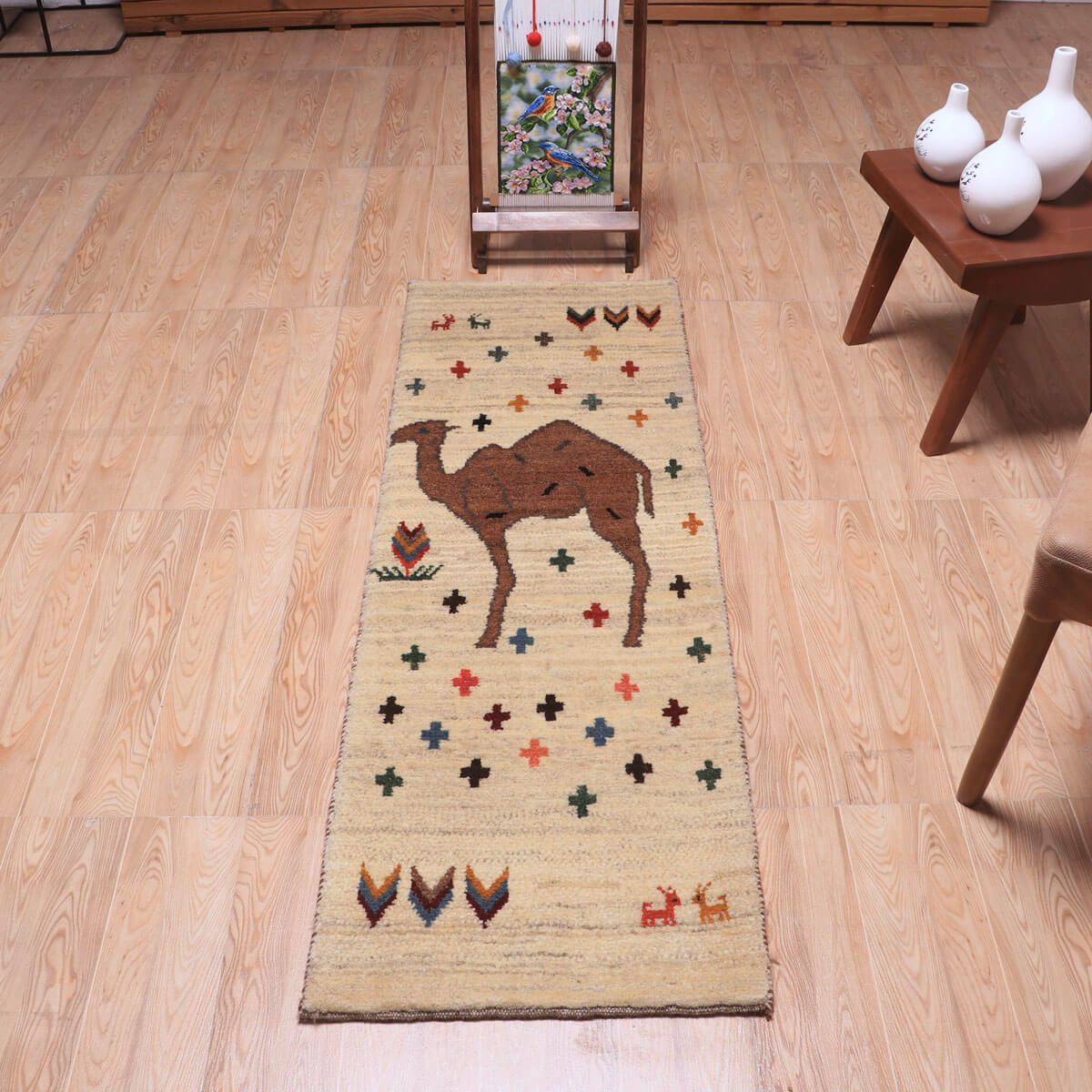 〜遊牧の風景を感じるキャメルモチーフの細長ラグ〜