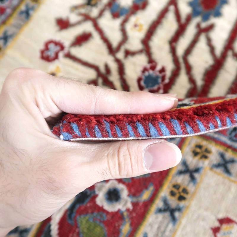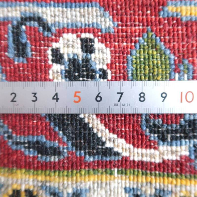 織りは、10cmあたり、およそ40から45目という普通のギャッベの数倍にもなる大変細かなルリバフ。抜け毛が少なく、手触りはふわりと柔らか。踏んだ時やんわりと沈み込む踏み心地です。腕の良い選りすぐられた織り子だけが手掛ける極上の手仕事です。