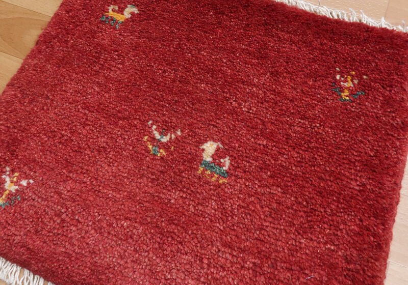 ギャッベのふるさと、イラン・シラーズ地方のふかふかしたギャッベの座布団サイズ。ギャッベは、毛足の間に空気があるのでムレにくく、ウールの程よい弾力性で長時間座っても疲れにくいので意外に快適です。ほんわかした温かみのある雰囲気に気分もなごみます。座布団がわりのほか、車の座席シート、ペット用のマット、壁飾りにも。一枚一枚が自由に織られた手作りです、サイズもご確認ください。