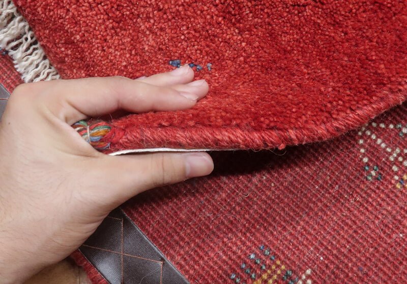 開封すぐの撮影でシワが見える写真があります。照明の違いで色合いが多少違って見えます。また、ギャッベは毛足に向きがあるので、見る方向で、明るかったり暗かったりも見えます。