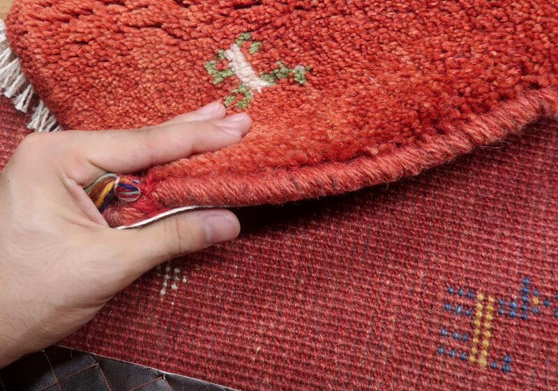 開封すぐの撮影でシワが見える写真があります。照明の違いで色合いが多少違って見えます。また、ギャッベは毛足に向きがあるので、見る方向で、明るかったり暗かったりも見えます。