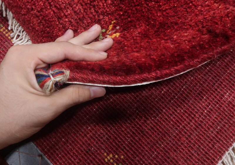 開封すぐの撮影でシワが見える写真があります。照明の違いで色合いが多少違って見えます。また、ギャッベは毛足に向きがあるので、見る方向で、明るかったり暗かったりも見えます。