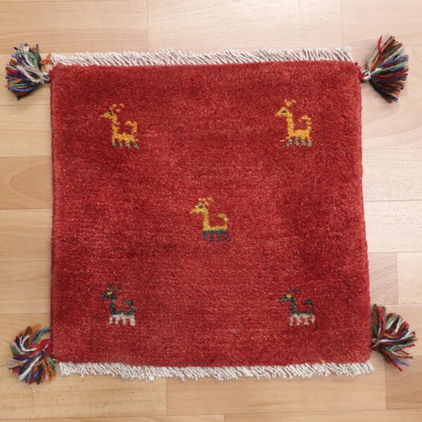 ギャッベのふるさと、イラン・シラーズ地方のふかふかしたギャッベの座布団サイズ。ギャッベは、毛足の間に空気があるのでムレにくく、ウールの程よい弾力性で長時間座っても疲れにくいので意外に快適です。ほんわかした温かみのある雰囲気に気分もなごみます。座布団がわりのほか、車の座席シート、ペット用のマット、壁飾りにも。一枚一枚が自由に織られた手作りです、サイズもご確認ください。