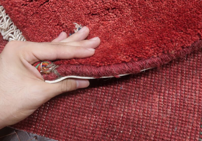 開封すぐの撮影でシワが見える写真があります。照明の違いで色合いが多少違って見えます。また、ギャッベは毛足に向きがあるので、見る方向で、明るかったり暗かったりも見えます。