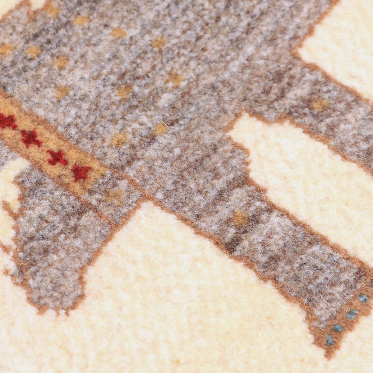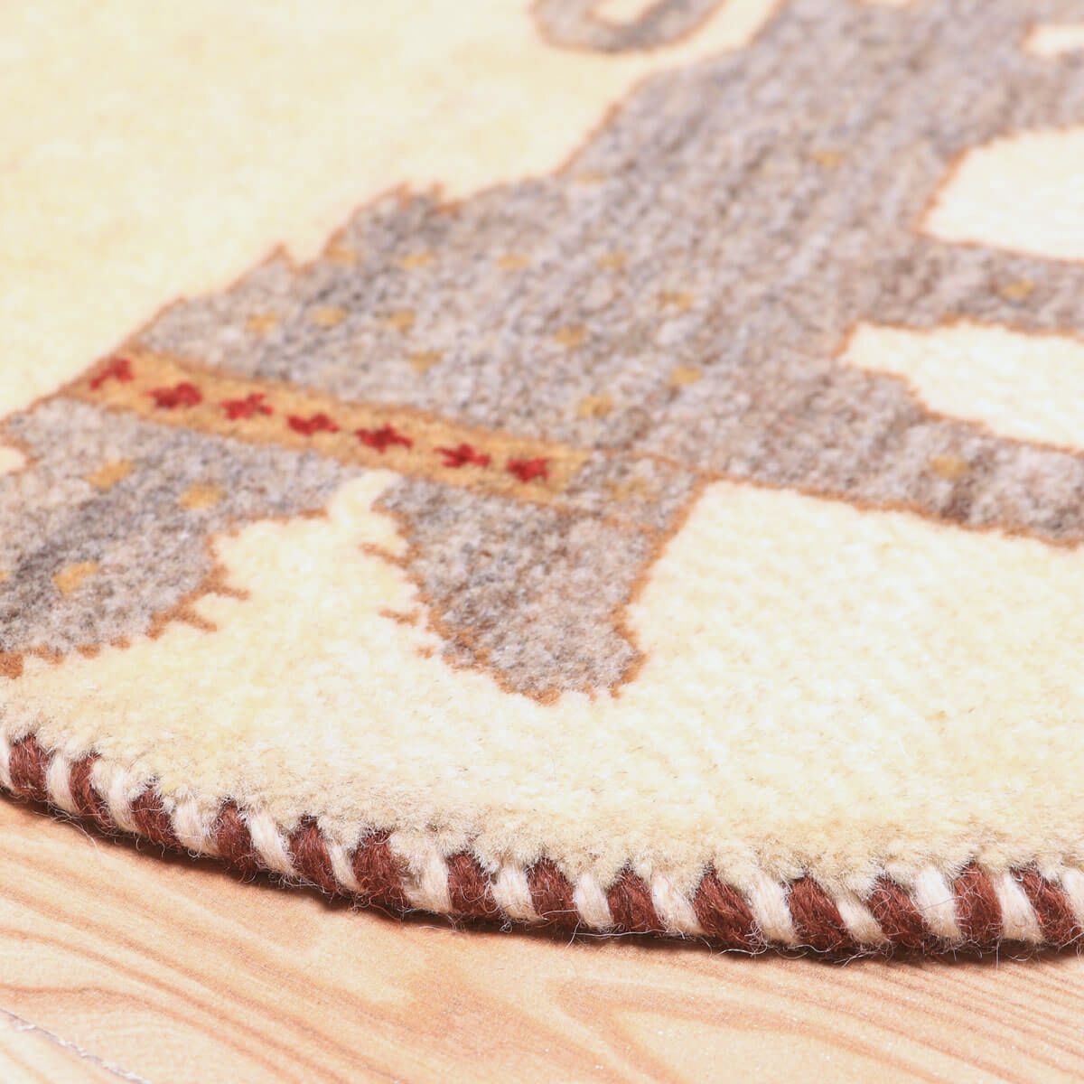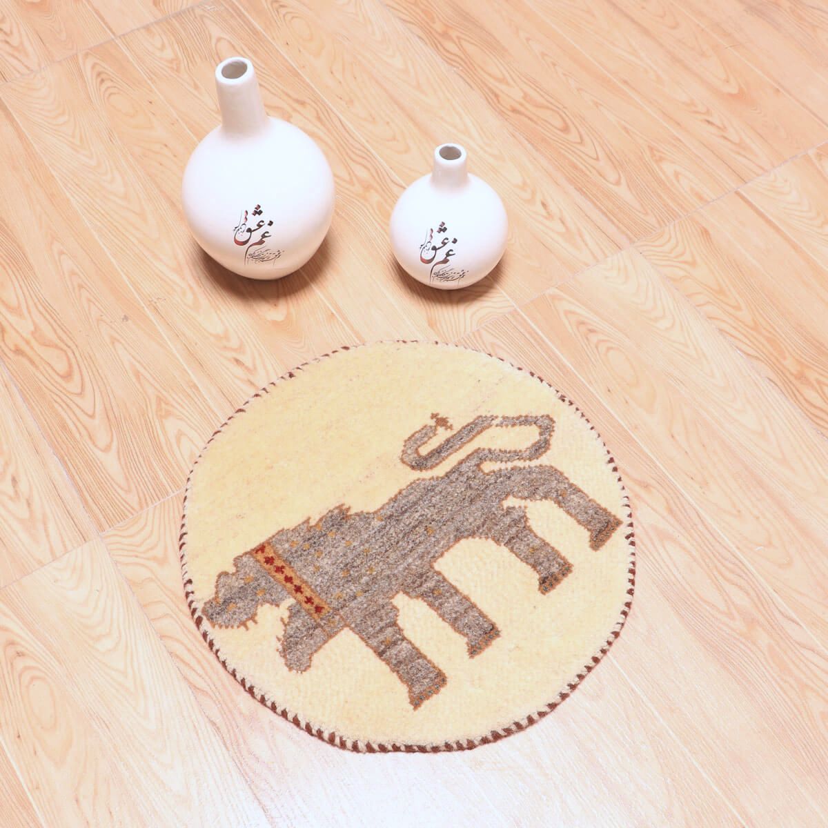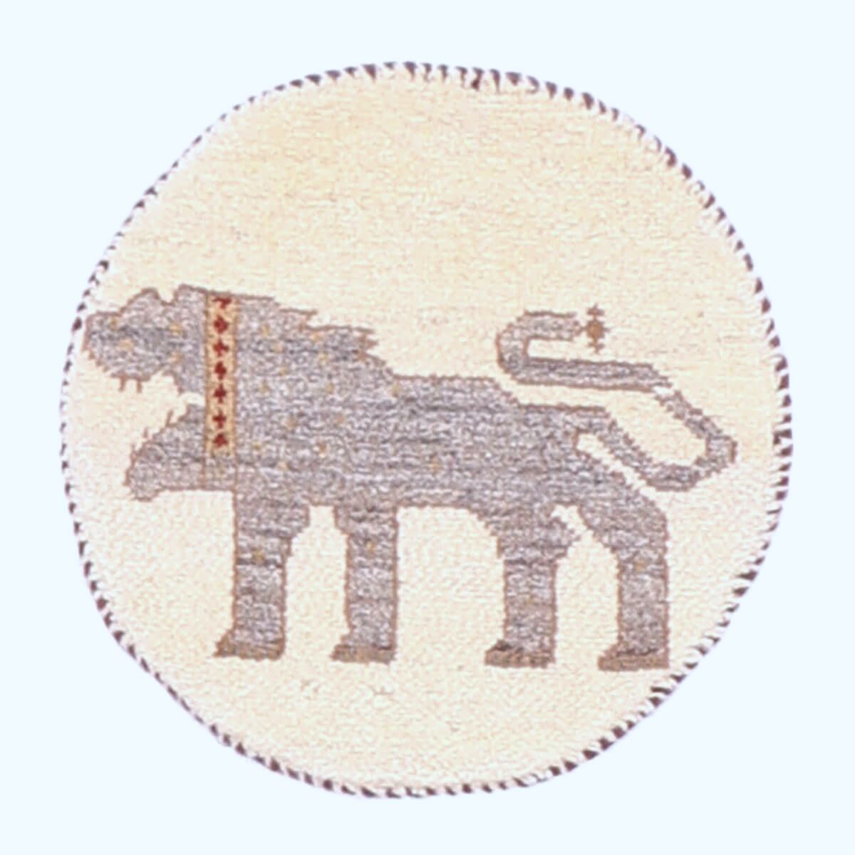 ・丸型の中に、ギャッベらしい素朴なライオンが大胆に描かれたデザイン