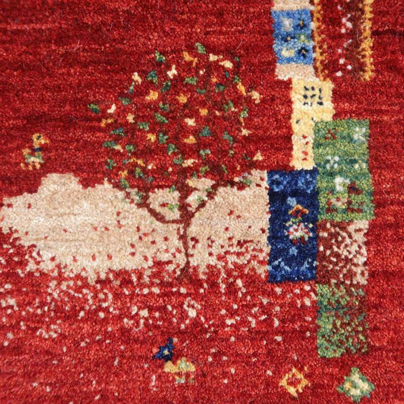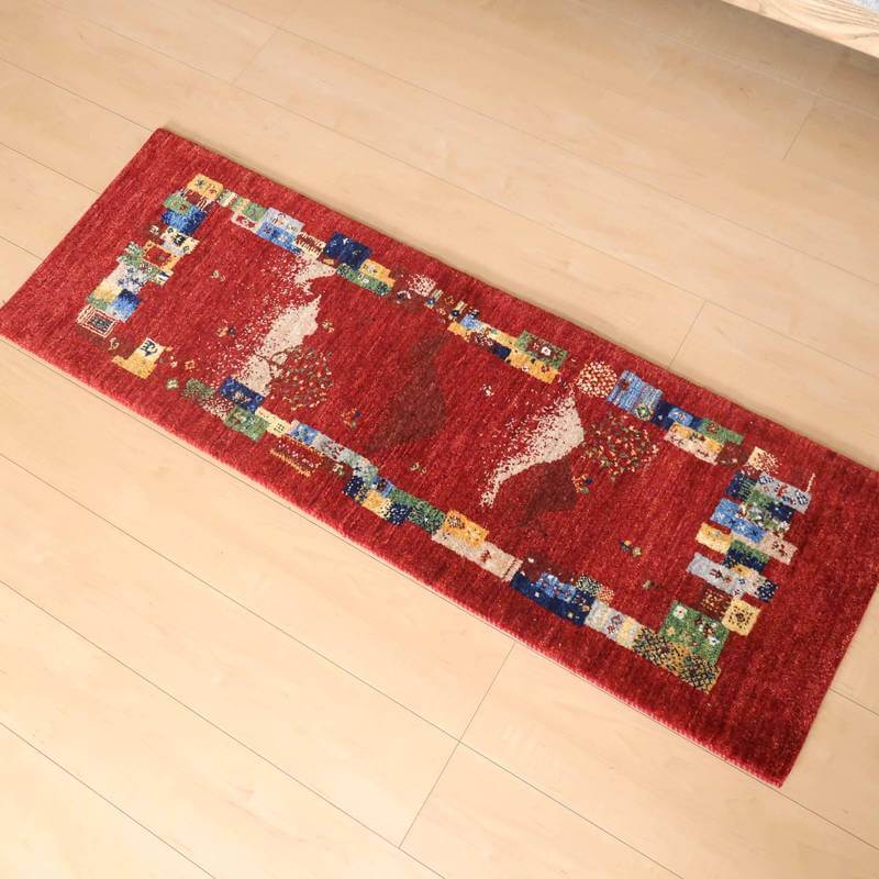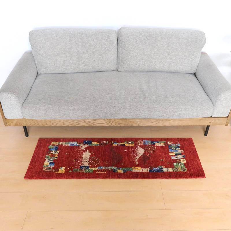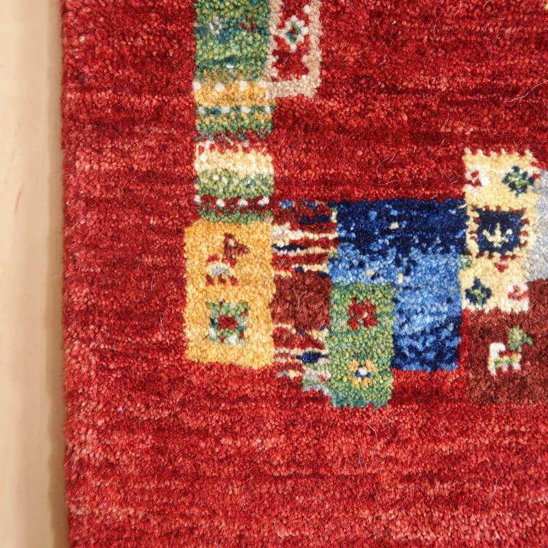 遠くにかすむ山々の景色の広がりを描いたギャッベ。遊牧生活の各シーンを色々なカラーごとに区切って、リズミカルに描いた可愛らしいデザインです。魅力であるアブラシ(色むらのグラデーション)が全体に細やかに入って、色の美しい揺らぎが堪能できます。暖かみのある木のインテリアでもモダンな空間でも馴染むアートデザインのギャッベ。冬毛の柔らかな最高部位のウールのみを使用して細かく編んだ最上級のソフトな手触りです。