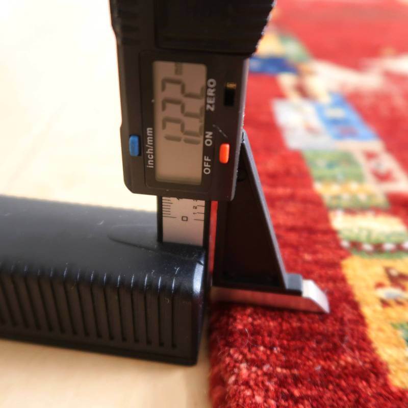 照明の違いで色合いが多少違って見えます。また、ギャッベは毛足に向きがあるので、見る方向で、明るかったり暗かったりも見えます。