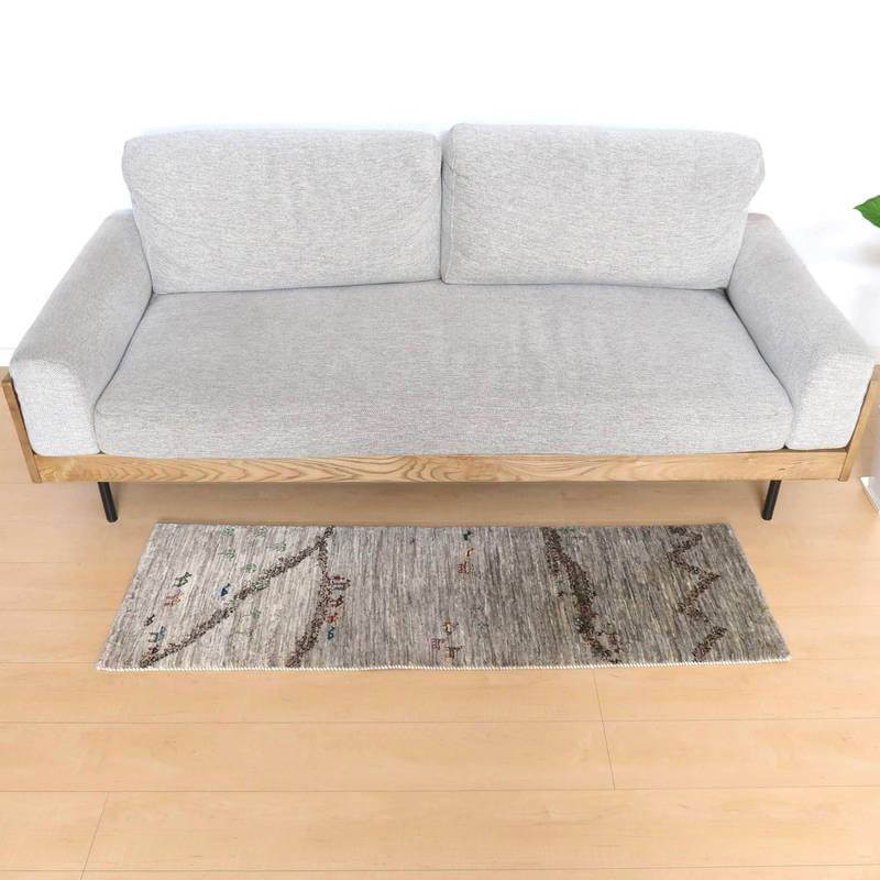 照明の違いで色合いが多少違って見えます。また、ギャッベは毛足に向きがあるので、見る方向で、明るかったり暗かったりも見えます。