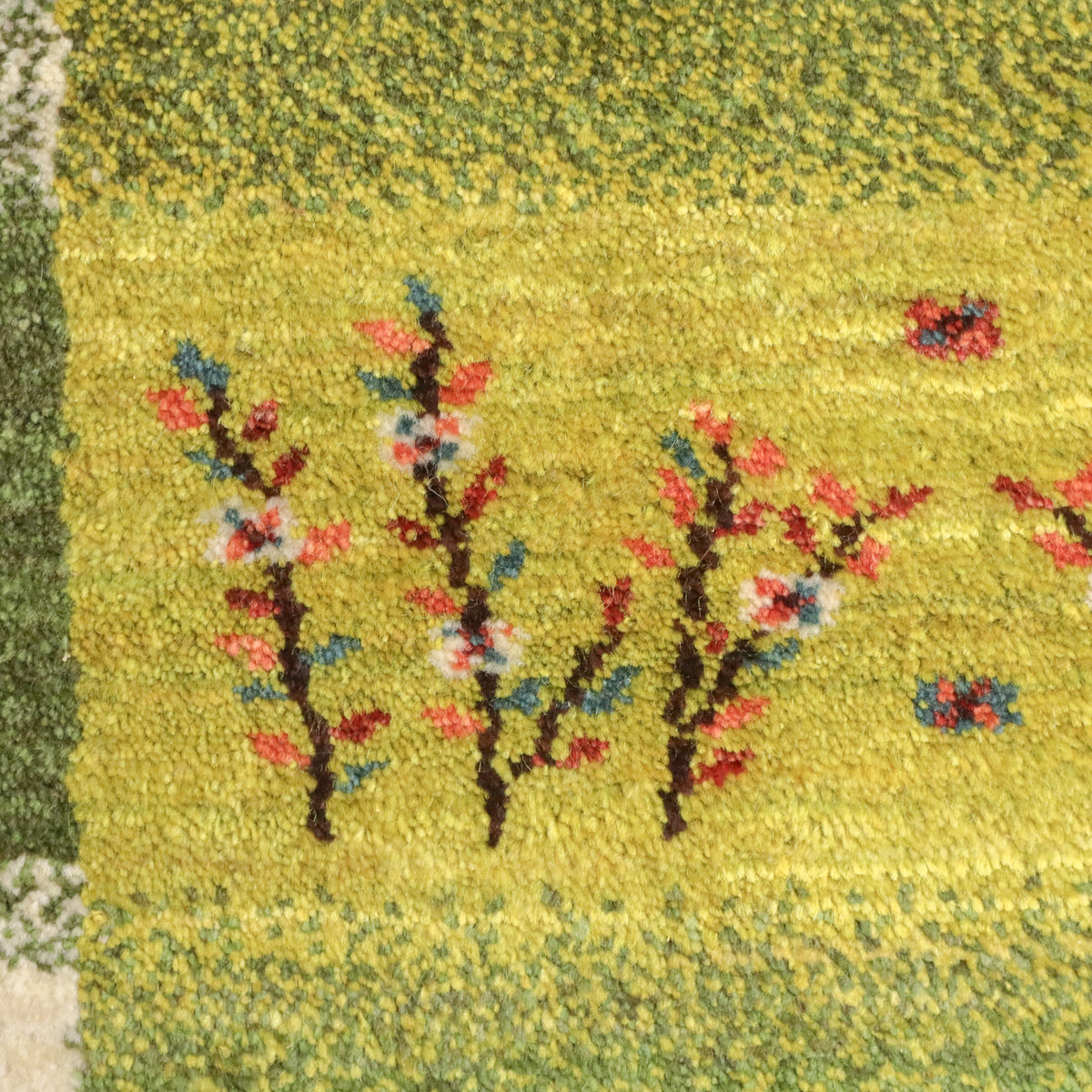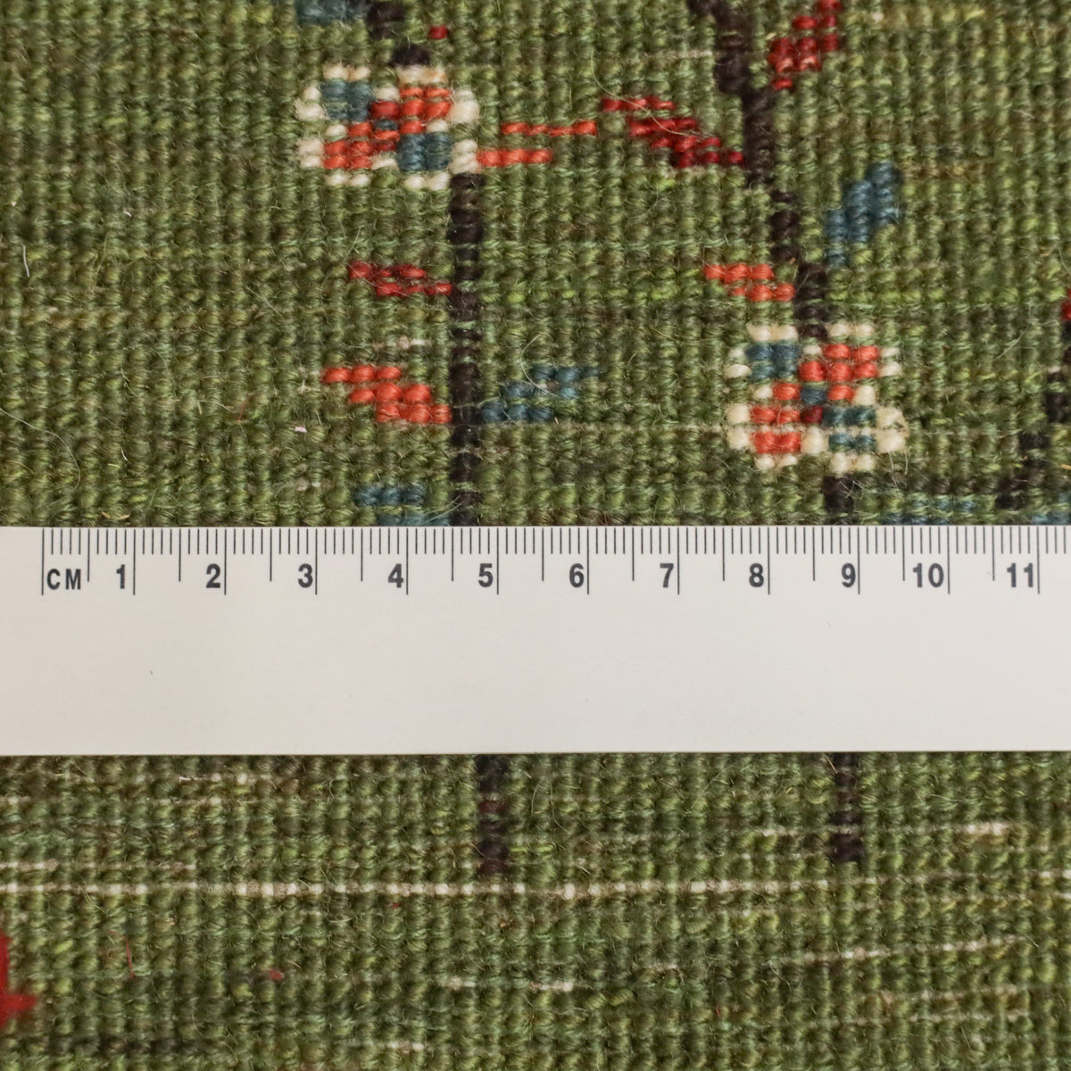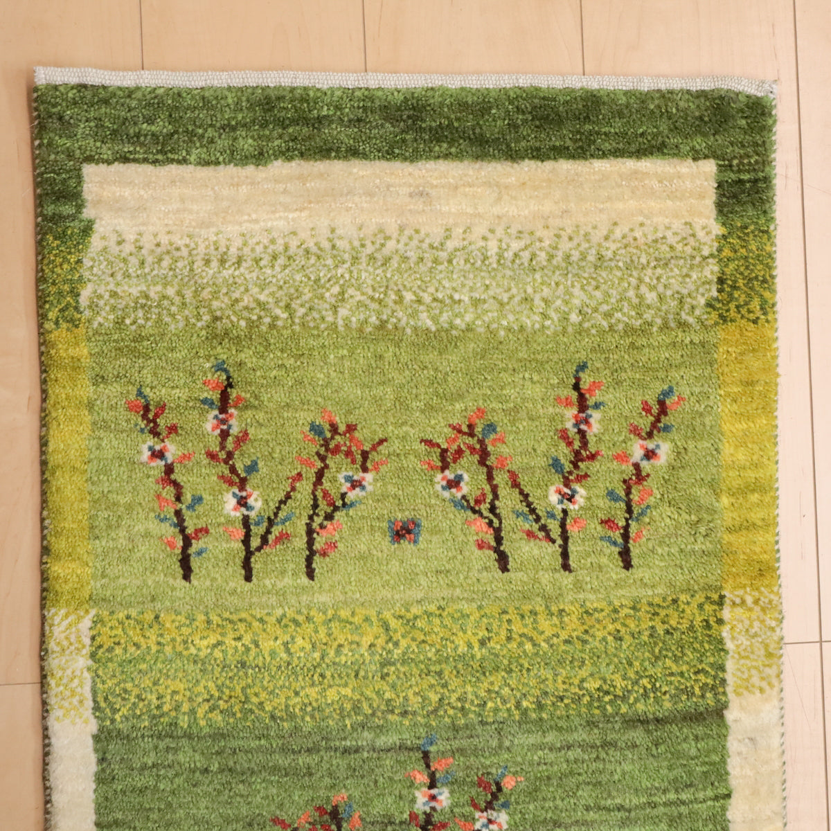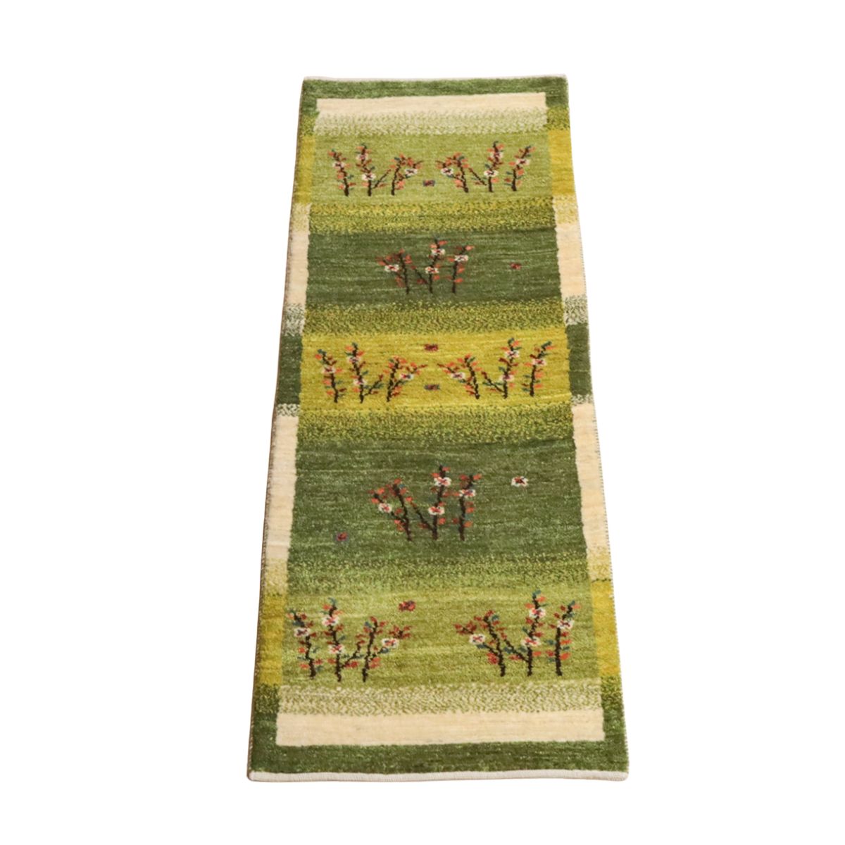 活き活きしたグリーンと明るい若草色がフレッシュな印象です。野の花咲く草原を切り取ったような広がりあるグラデーションが大変美しいグリーンギャッベです。