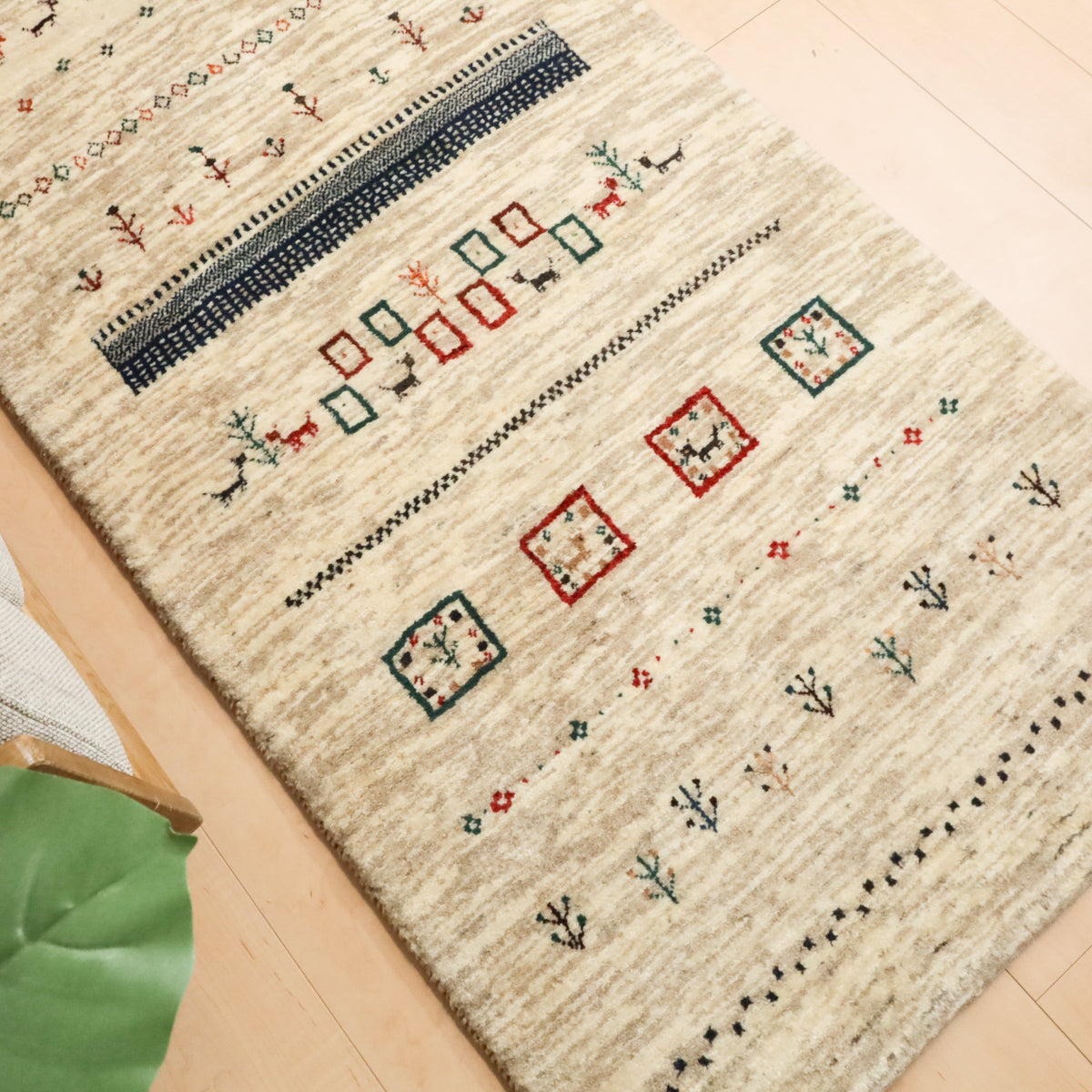 カシュクリ族の織る「カシュクリ」と呼ばれるギャッベです。織り密度が通常のギャッベより高く、ウールもより質の良いものが使われているハイランクの上質なギャッベです。