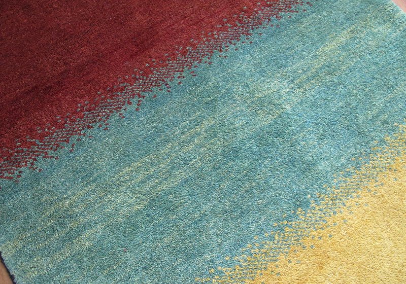 照明の違いで色合いが多少違って見えます。また、ギャッベは毛足に向きがあるので、見る方向で、明るかったり暗かったりも見えます。