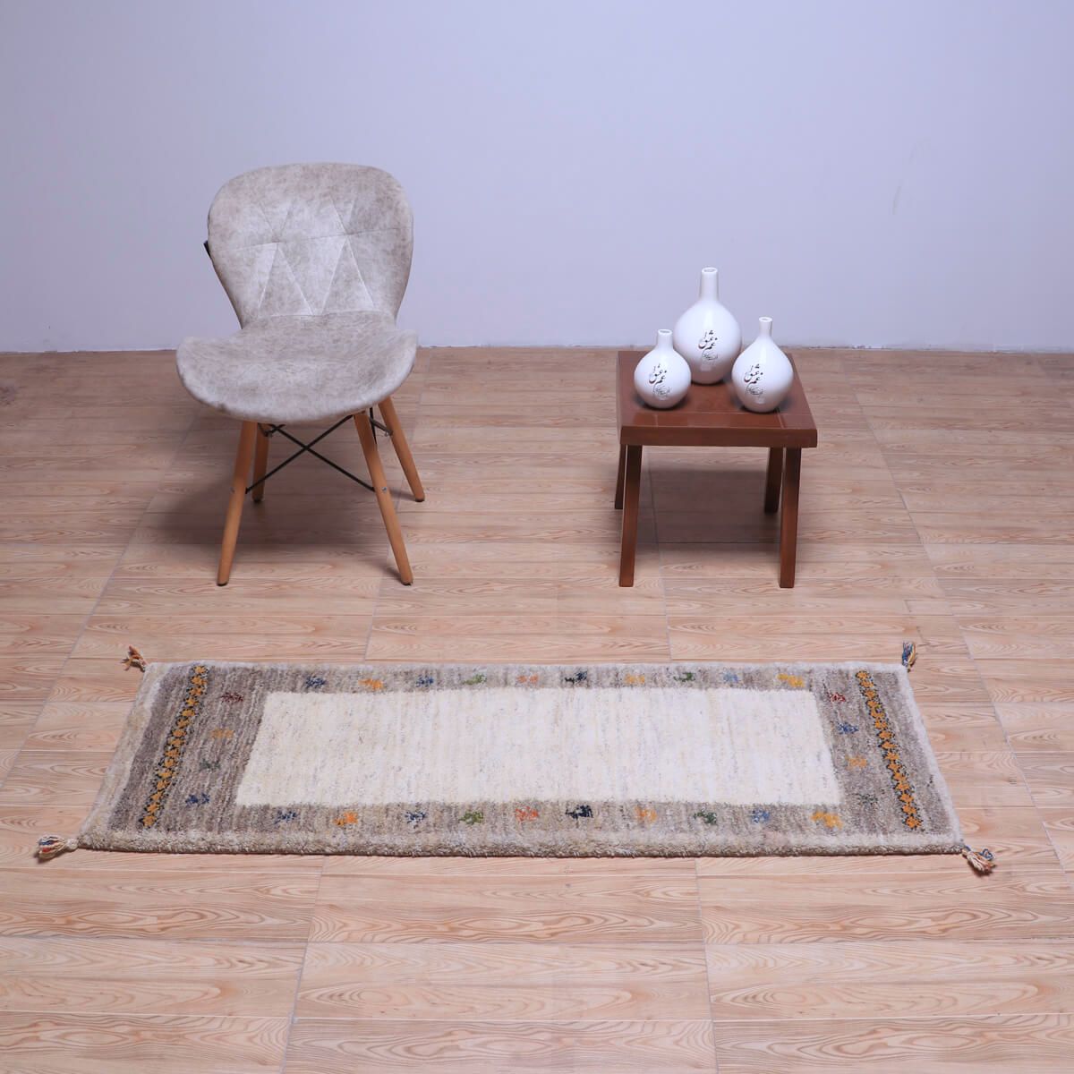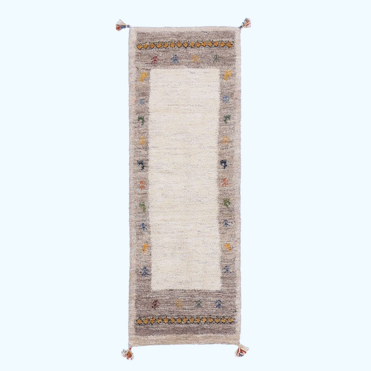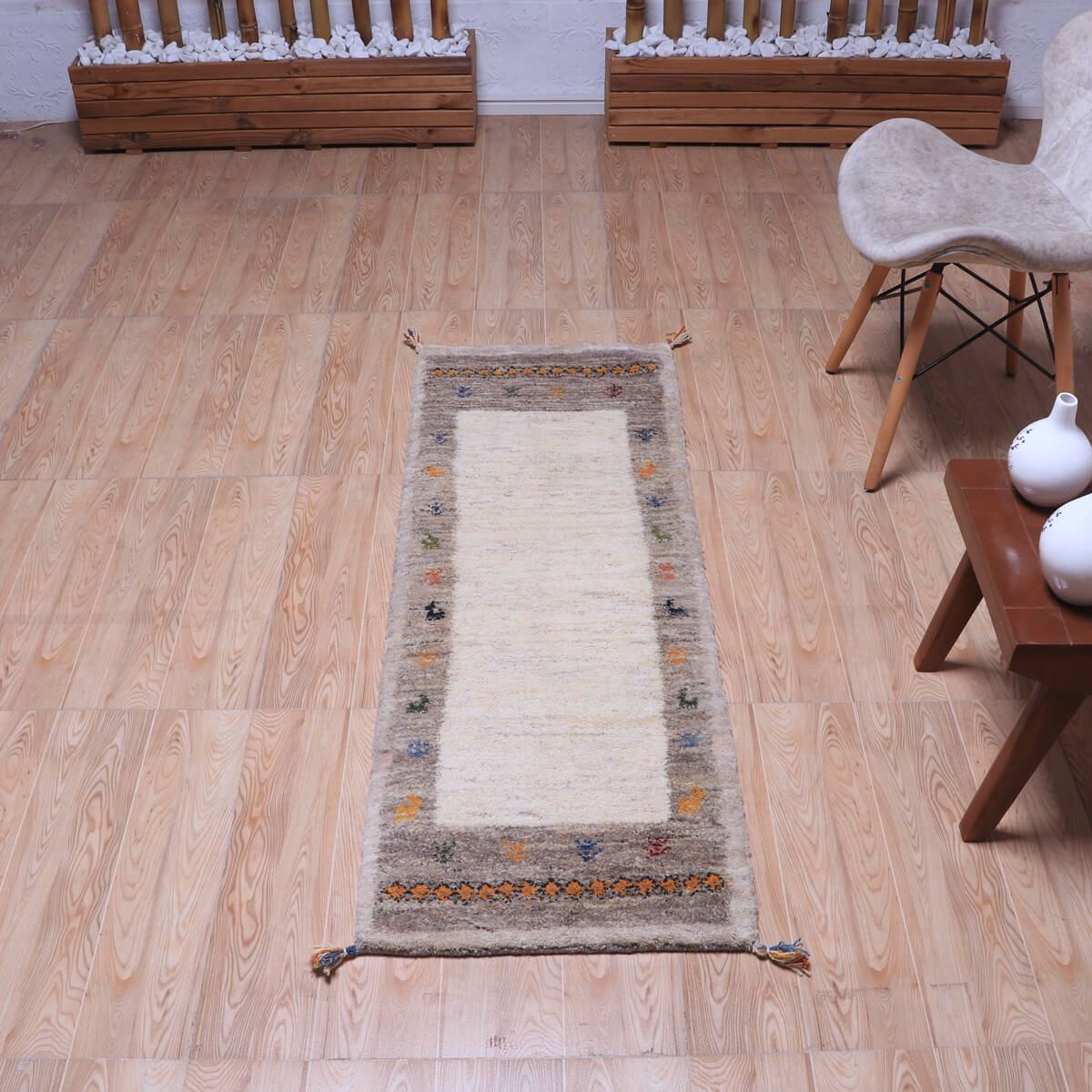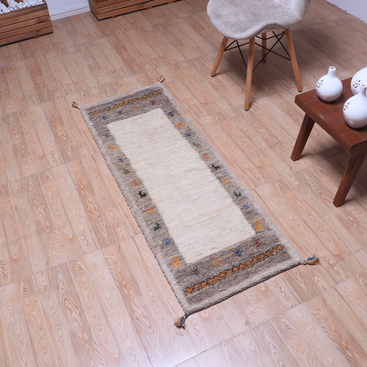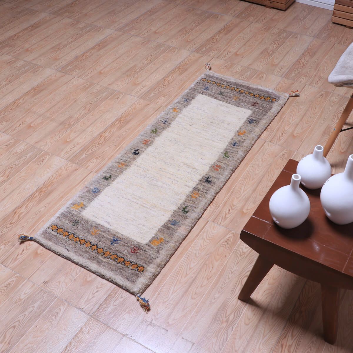 ・短辺には伝統的な連続文様が入り、ギャッベらしい素朴さと個性が楽しめます