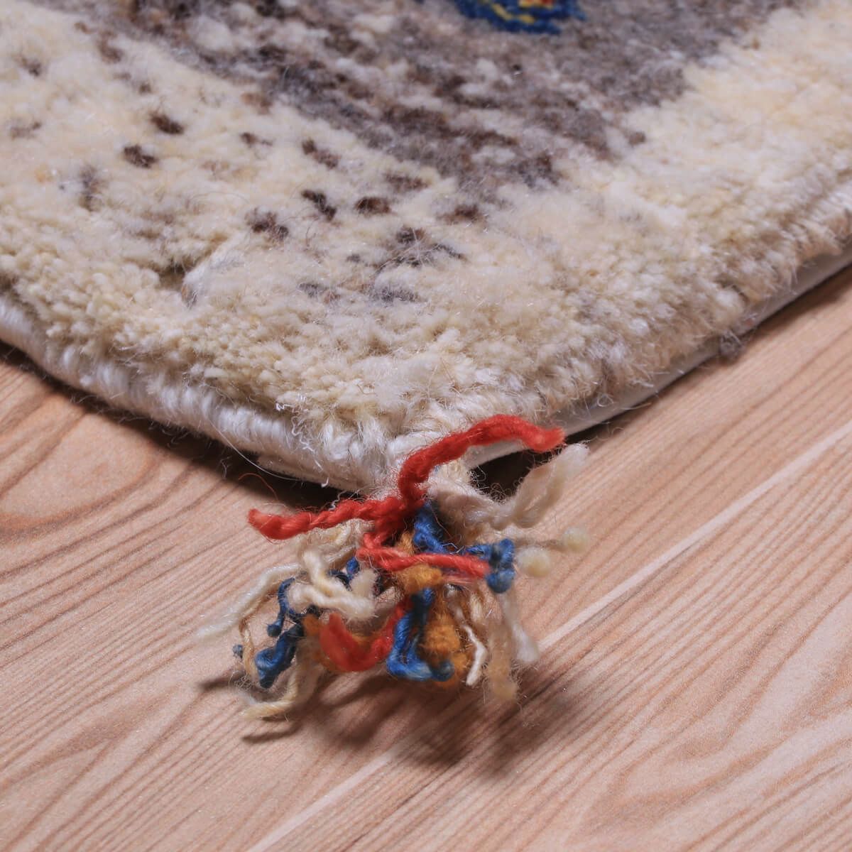 ・縁の赤や青の連続文様が、ギャッベらしい伝統と遊び心を感じさせます