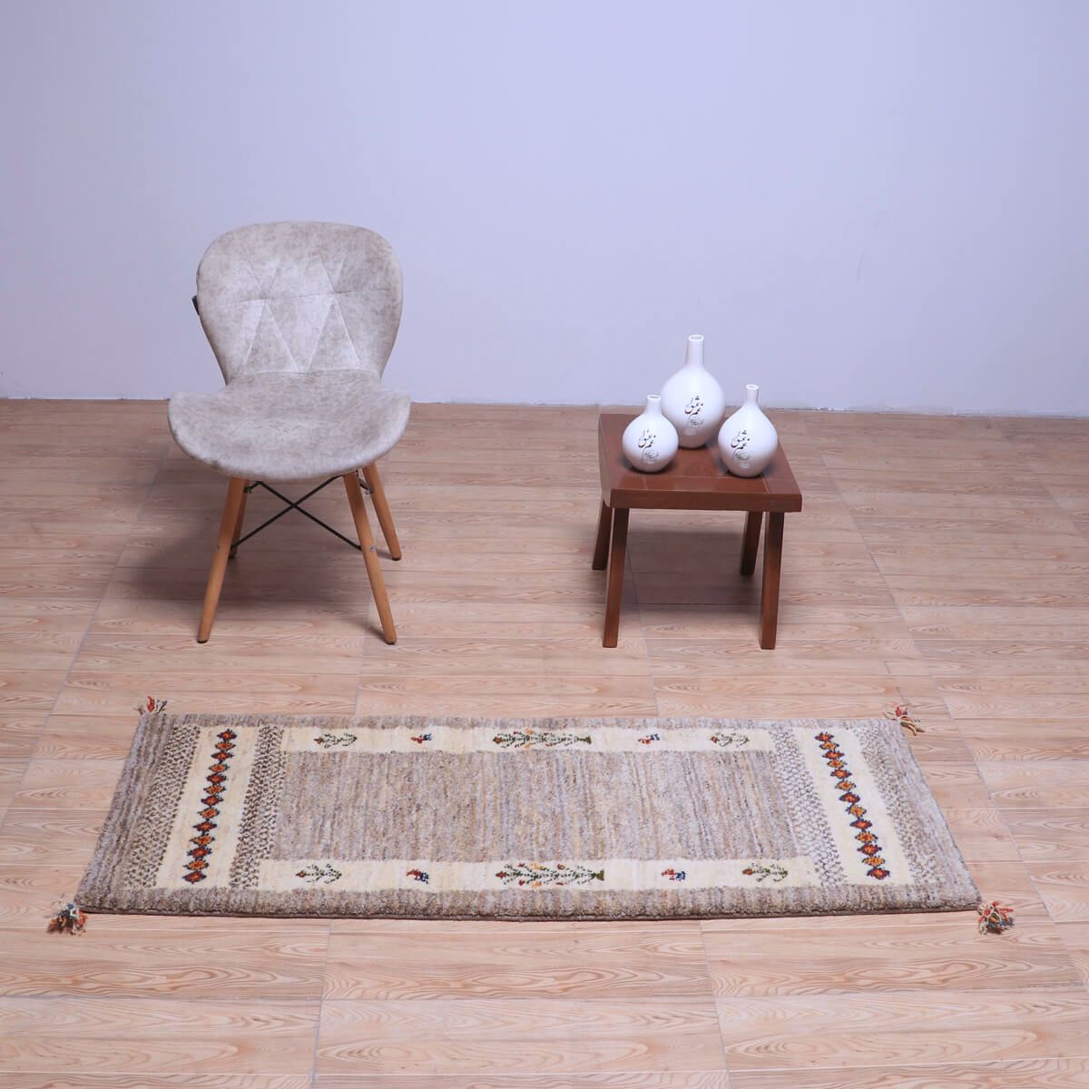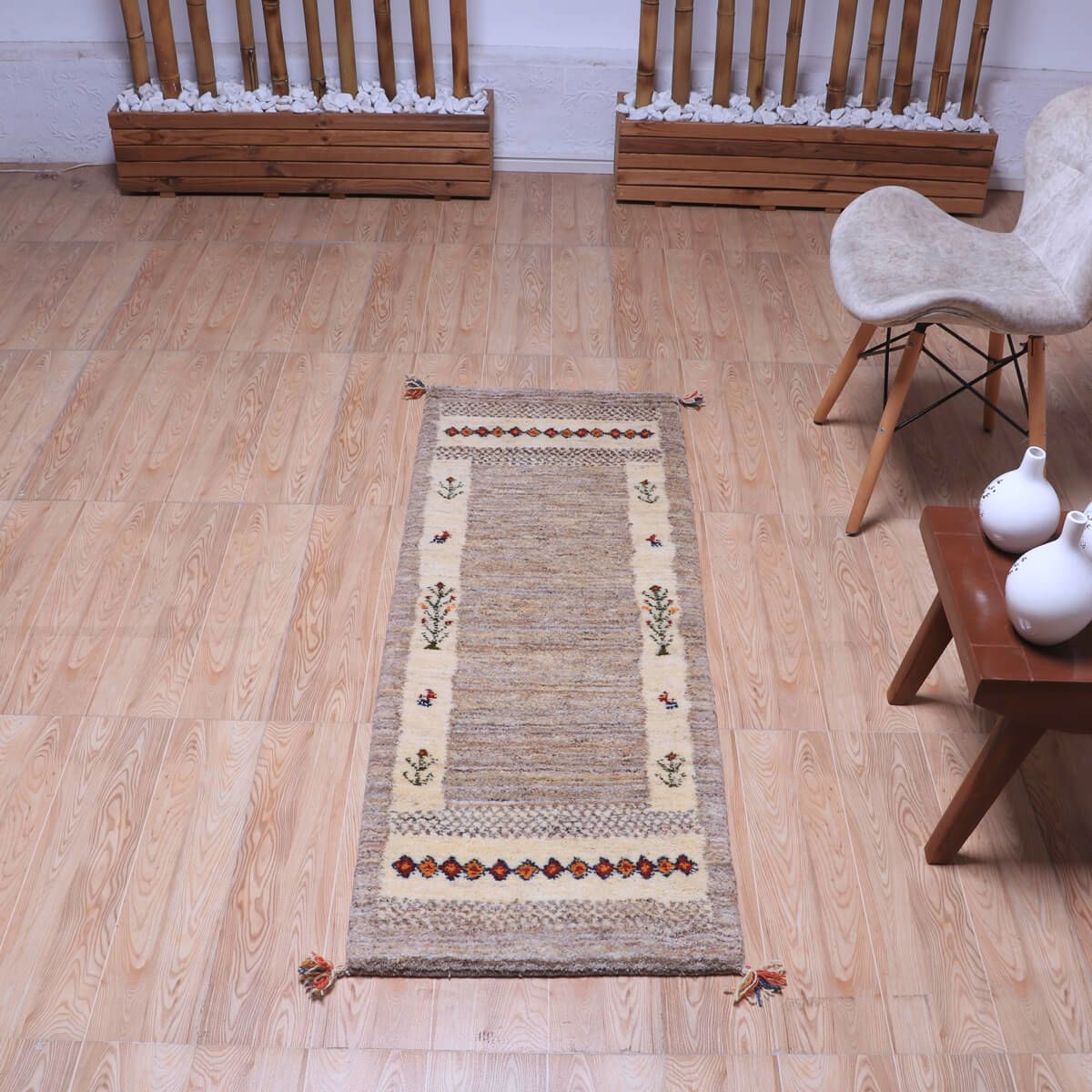 ・中央はシンプルな無地調で、余白を活かしたデザインがギャッベらしい上品さを引き立てます