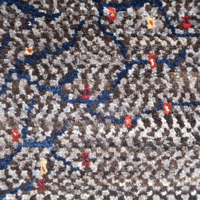 織りは、10cmあたり、およそ40から45目という普通のギャッベの数倍にもなる大変細かなルリバフ。抜け毛が少なく、手触りはふわりと柔らか。踏んだ時やんわりと沈み込む踏み心地です。腕の良い選りすぐられた織り子だけが手掛ける極上の手仕事です。