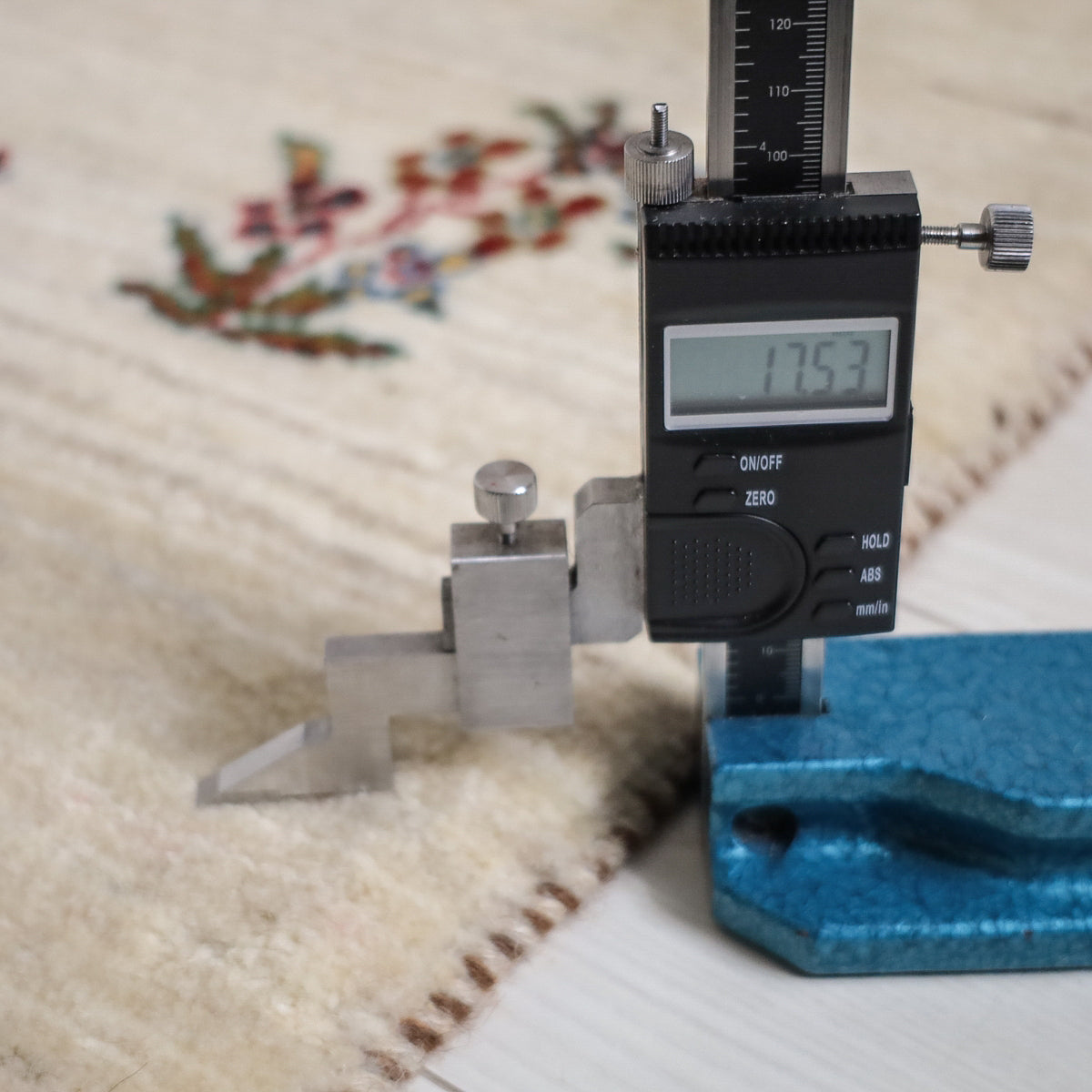 織りは、10cmあたり、およそ40から45目という普通のギャッベの数倍にもなる大変細かなルリバフ。細かく繊細なデザインで手触りはふわりと柔らか。やんわりと沈み込む踏み心地です。腕の良い選りすぐられた織り子だけが手掛ける極上の手仕事です。