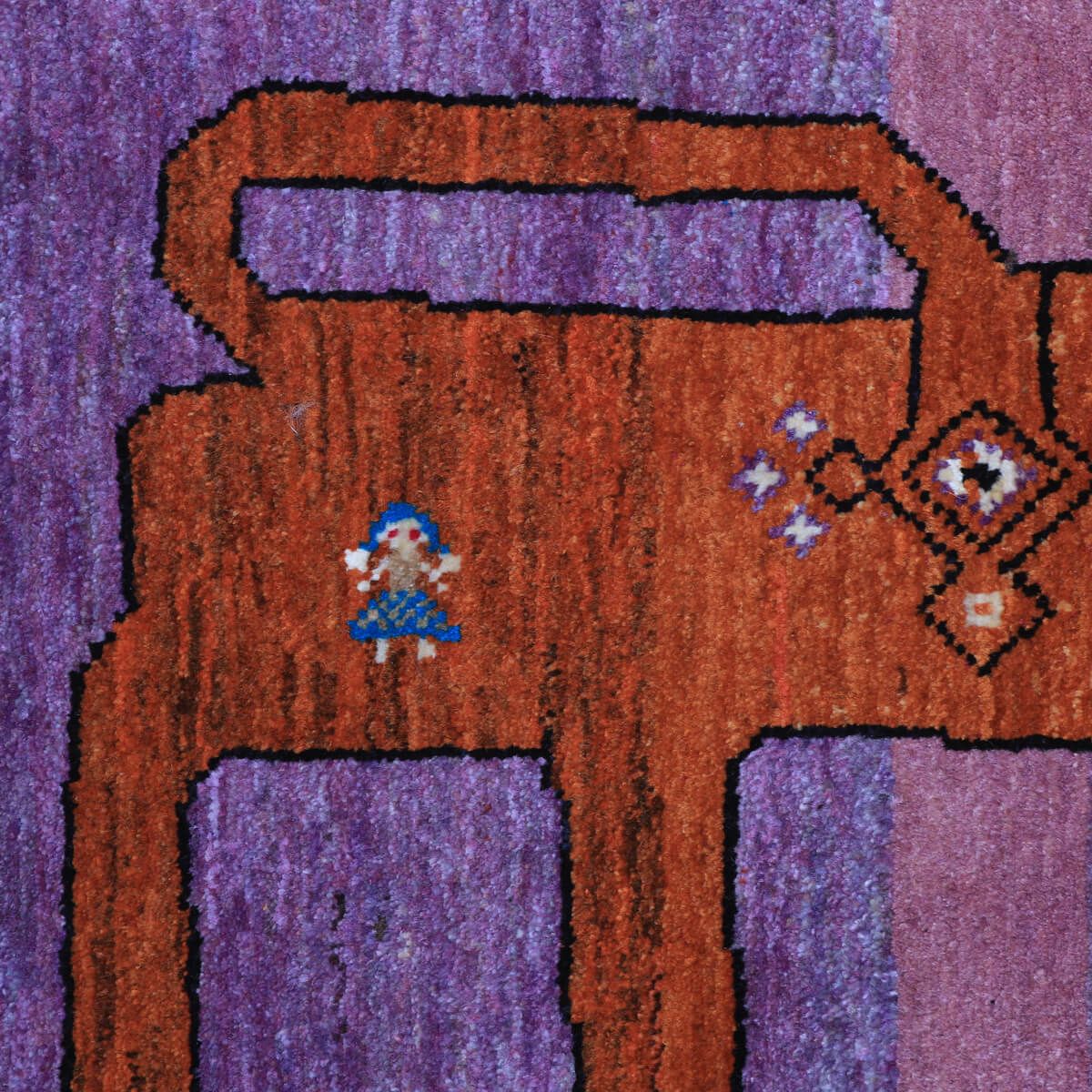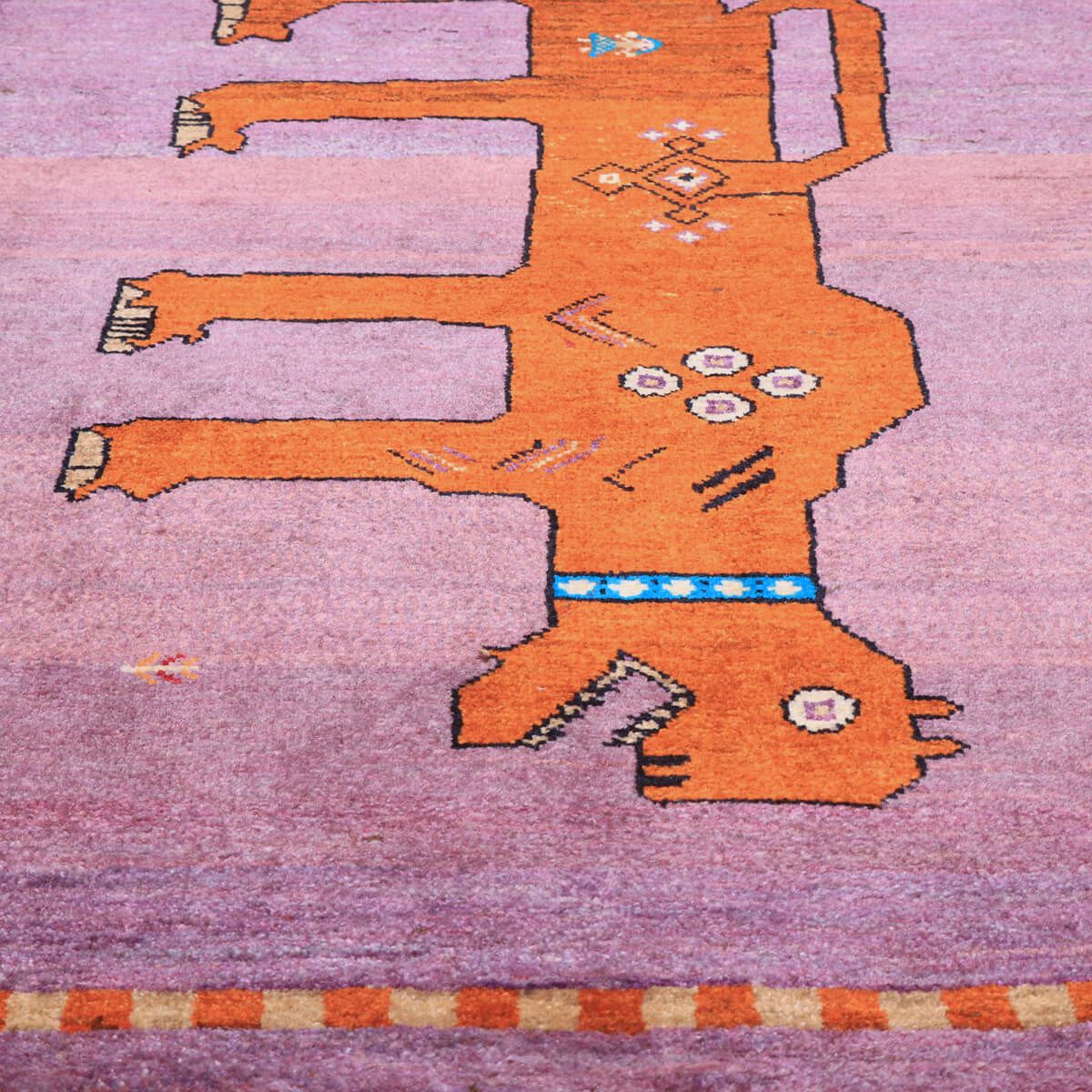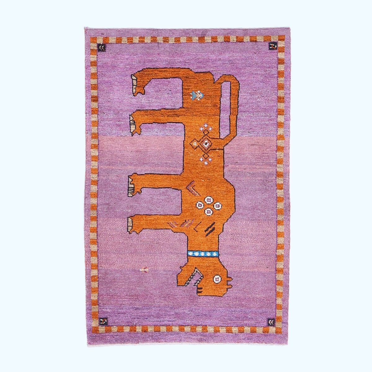 ・中央に大きく描かれた動物(ライオン)が、ギャッベならではの素朴でチャーミングな表情