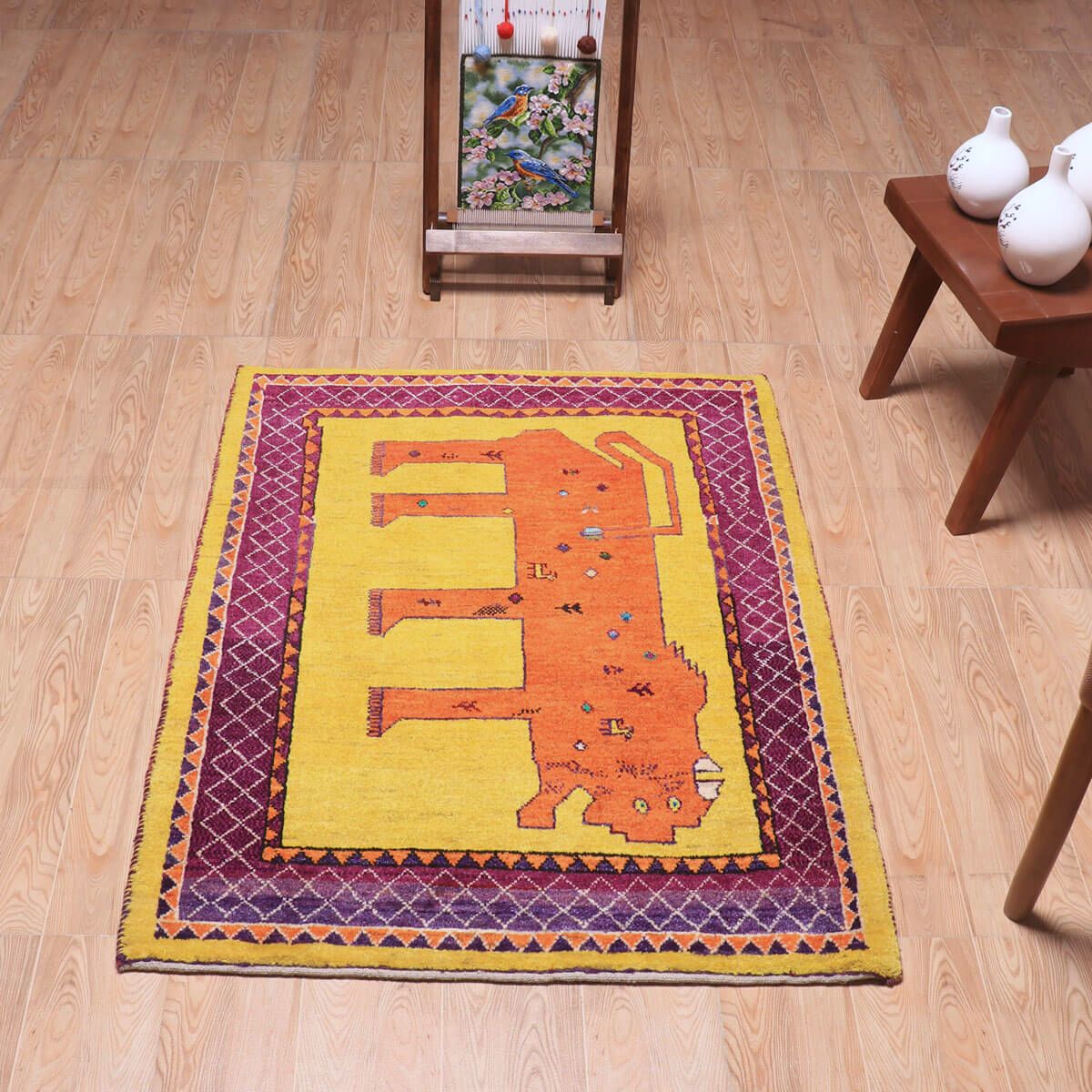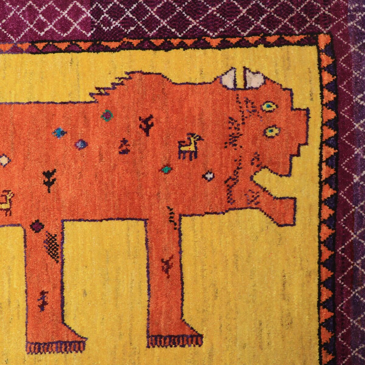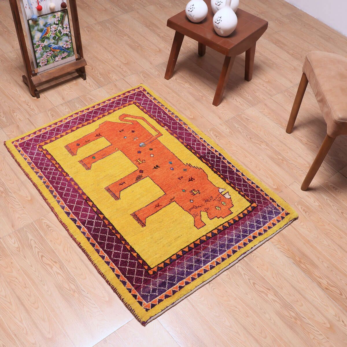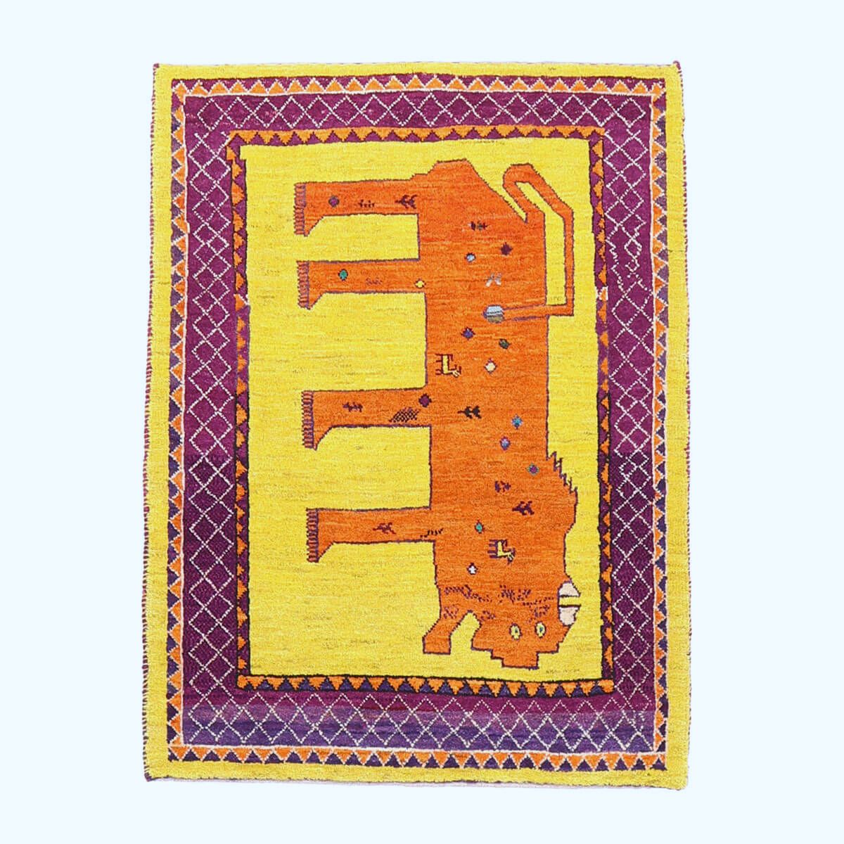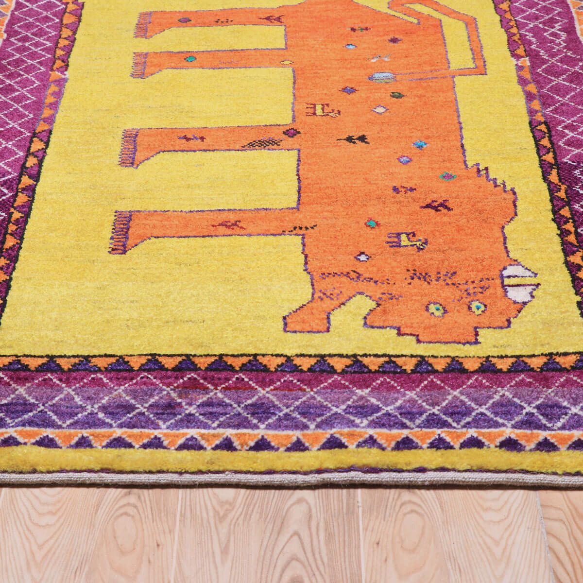 ・中央に大胆に描かれたライオンが、ギャッベらしい遊び心とアート性を感じさせるデザイン