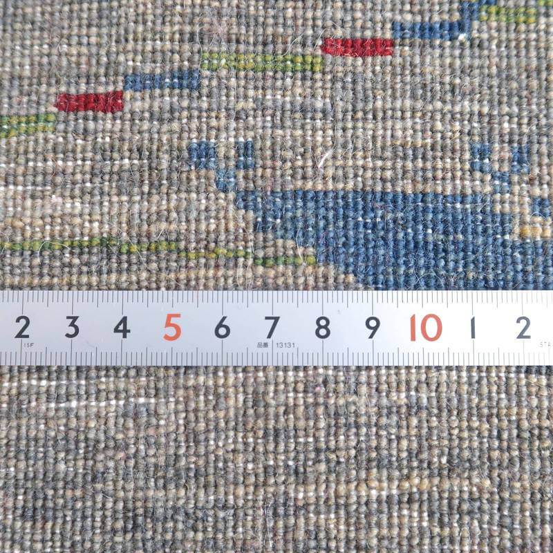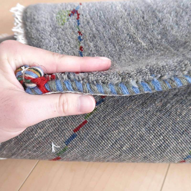 織りは、10cmあたり、およそ40から45目という普通のギャッベの数倍にもなる大変細かなルリバフ。抜け毛が少なく、手触りはふわりと柔らか。踏んだ時やんわりと沈み込む踏み心地です。腕の良い選りすぐられた織り子だけが手掛ける極上の手仕事です。