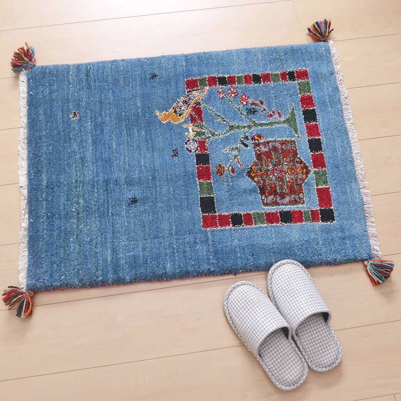プレミアムギャッベ/ホシナマイ(ルリバフ) 81×61cm(HSS-73157)