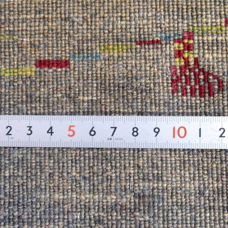 織りは、10cmあたり、およそ40から45目という普通のギャッベの数倍にもなる大変細かなルリバフ。抜け毛が少なく、手触りはふわりと柔らか。踏んだ時やんわりと沈み込む踏み心地です。腕の良い選りすぐられた織り子だけが手掛ける極上の手仕事です。