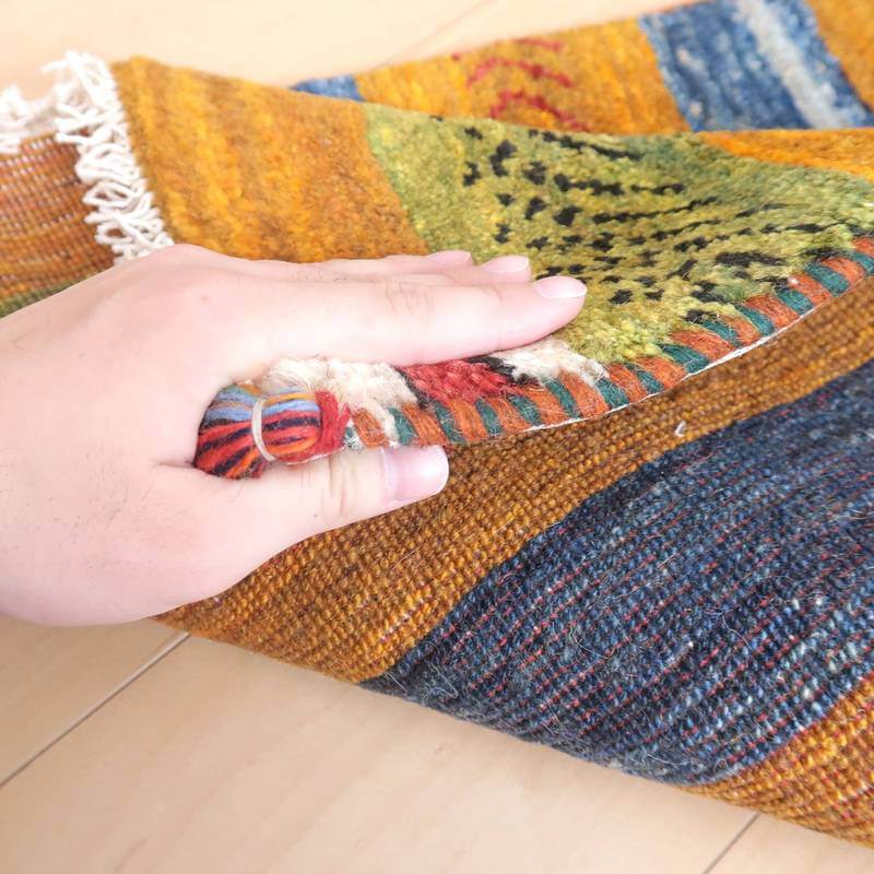 織りは、10cmあたり、およそ40から45目という普通のギャッベの数倍にもなる大変細かなルリバフ。抜け毛が少なく、手触りはふわりと柔らか。踏んだ時やんわりと沈み込む踏み心地です。腕の良い選りすぐられた織り子だけが手掛ける極上の手仕事です。