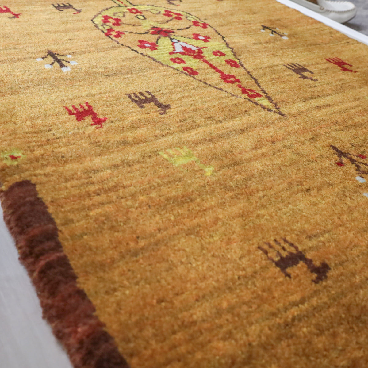 カシュクリ族の織る「カシュクリ」と呼ばれるギャッベは、通常のギャッベの織り目よりもはるかに細かく織られています。カシュクリは高い技術を持つ選ばれた織り子だけが手掛けることができ、デザインは細やかで柔らかなウール素材、やんわりと沈み込む快適な踏み心地のハイランクな上質ギャッベです。