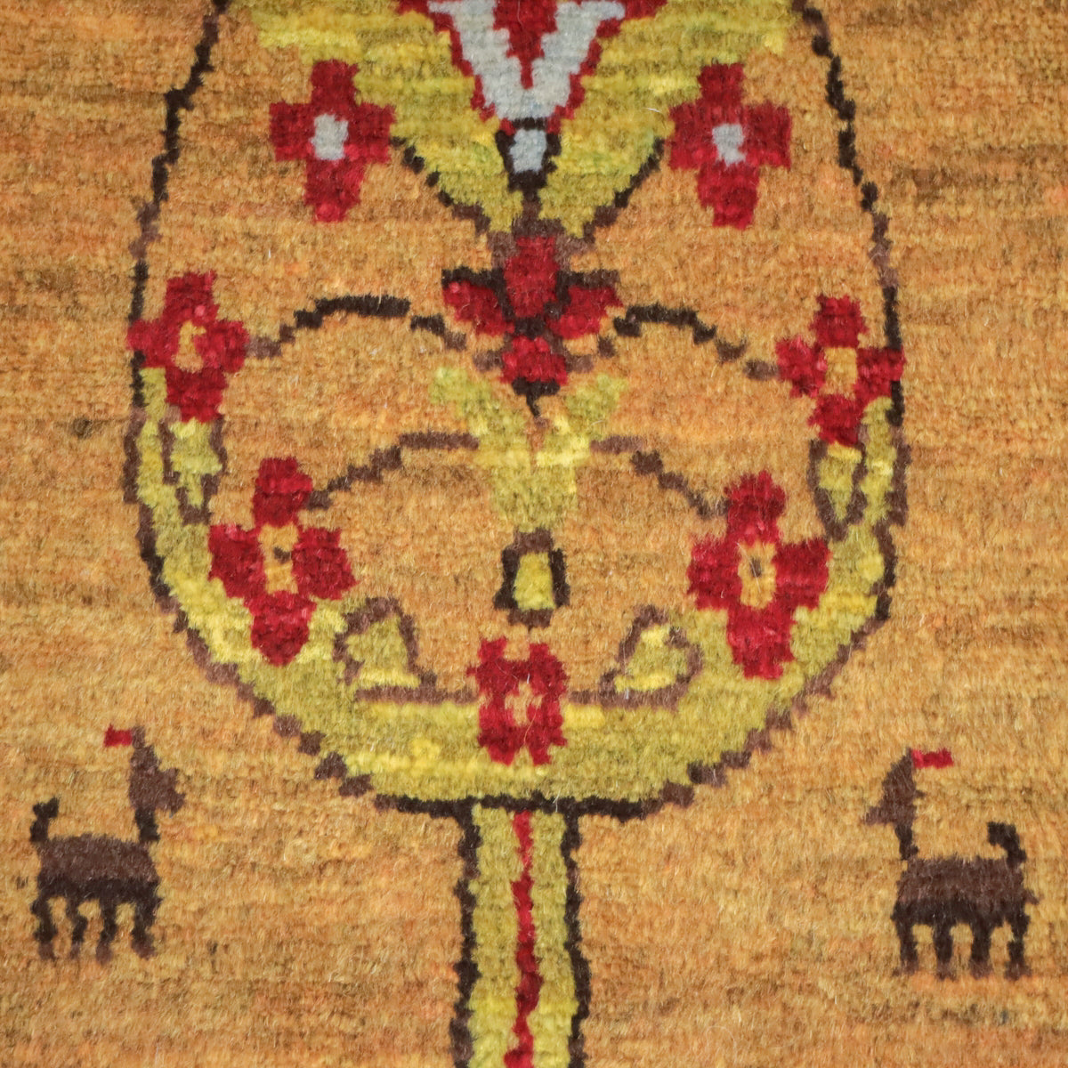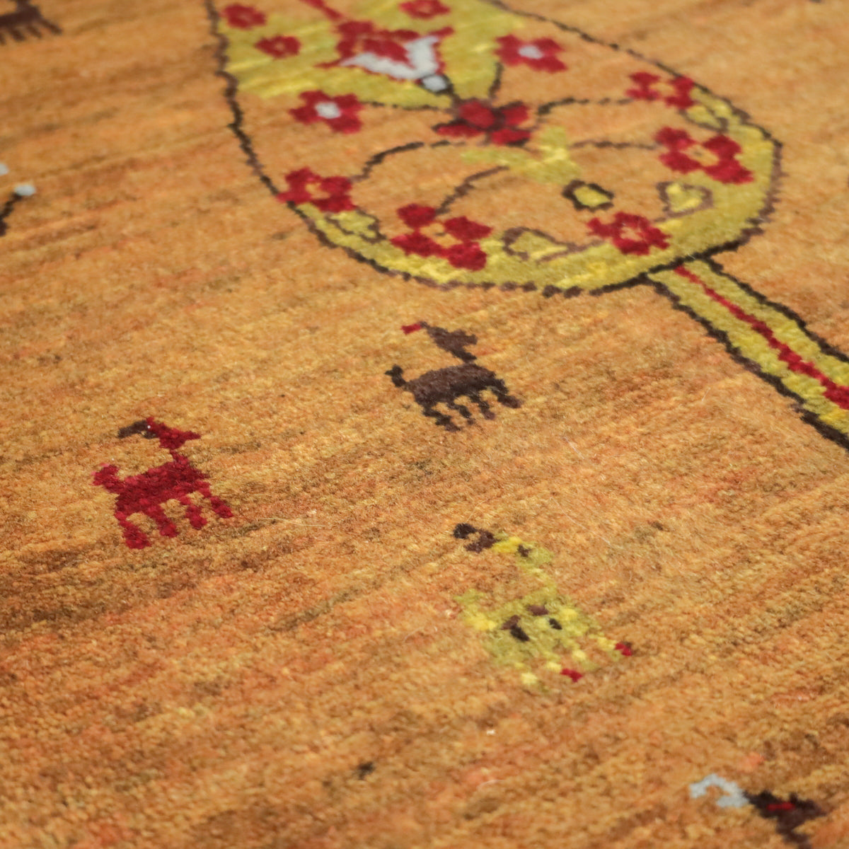 落ち着きのあるイエローのベースに、生命の木と動物たちが織り込まれた可愛らしいデザイン。