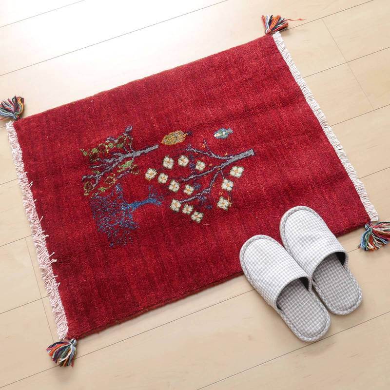 照明の違いで色合いが多少違って見えます。また、ギャッベは毛足に向きがあるので、見る方向で、明るかったり暗かったりも見えます。