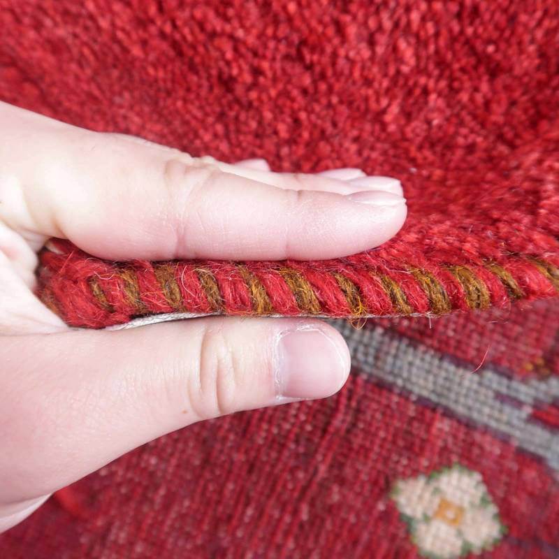 織りは、10cmあたり、およそ40から45目という普通のギャッベの数倍にもなる大変細かなルリバフ。抜け毛が少なく、手触りはふわりと柔らか。踏んだ時やんわりと沈み込む踏み心地です。腕の良い選りすぐられた織り子だけが手掛ける極上の手仕事です。