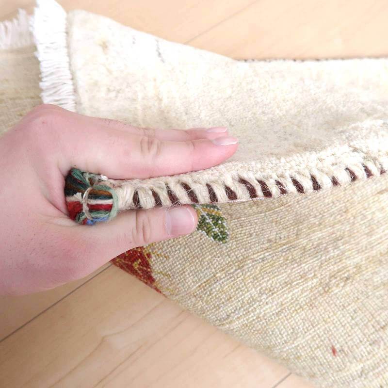織りは、10cmあたり、およそ40から45目という普通のギャッベの数倍にもなる大変細かなルリバフ。抜け毛が少なく、手触りはふわりと柔らか。踏んだ時やんわりと沈み込む踏み心地です。腕の良い選りすぐられた織り子だけが手掛ける極上の手仕事です。