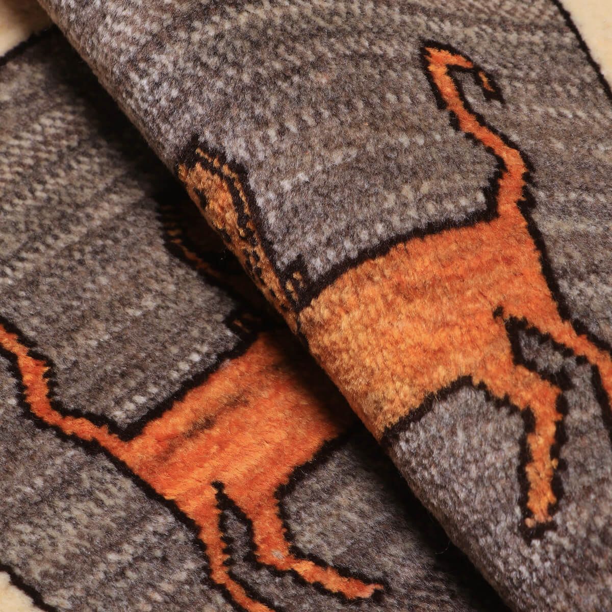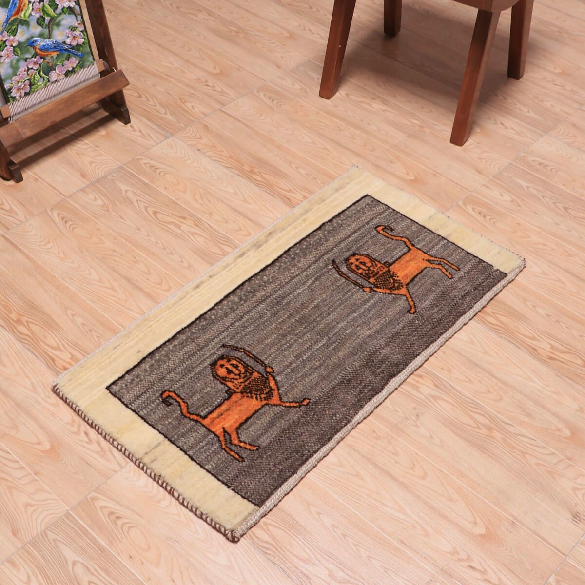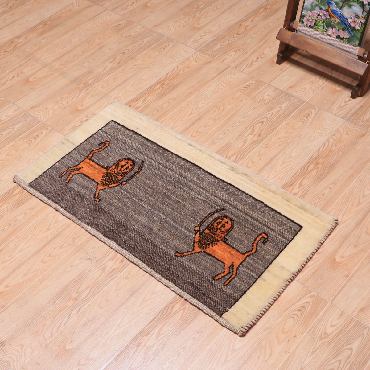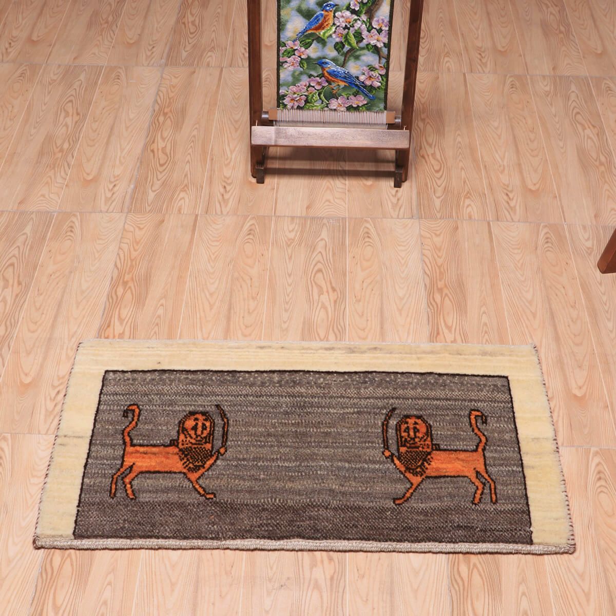 ・ライオンのユーモラスな表情が、ギャッベならではの素朴な温かみを感じさせます