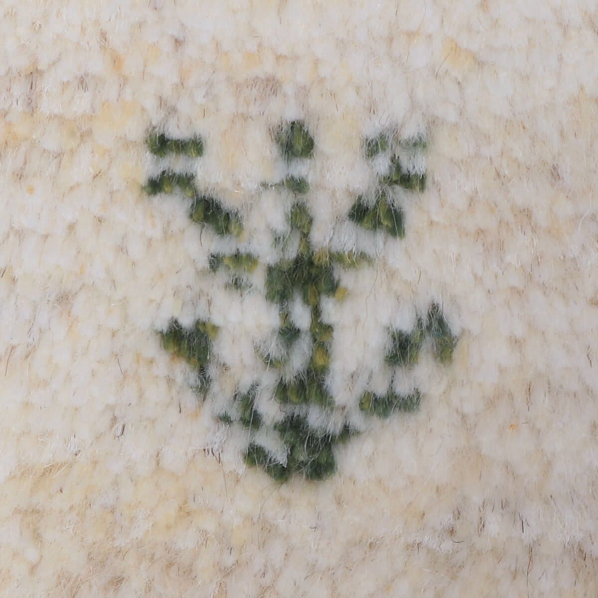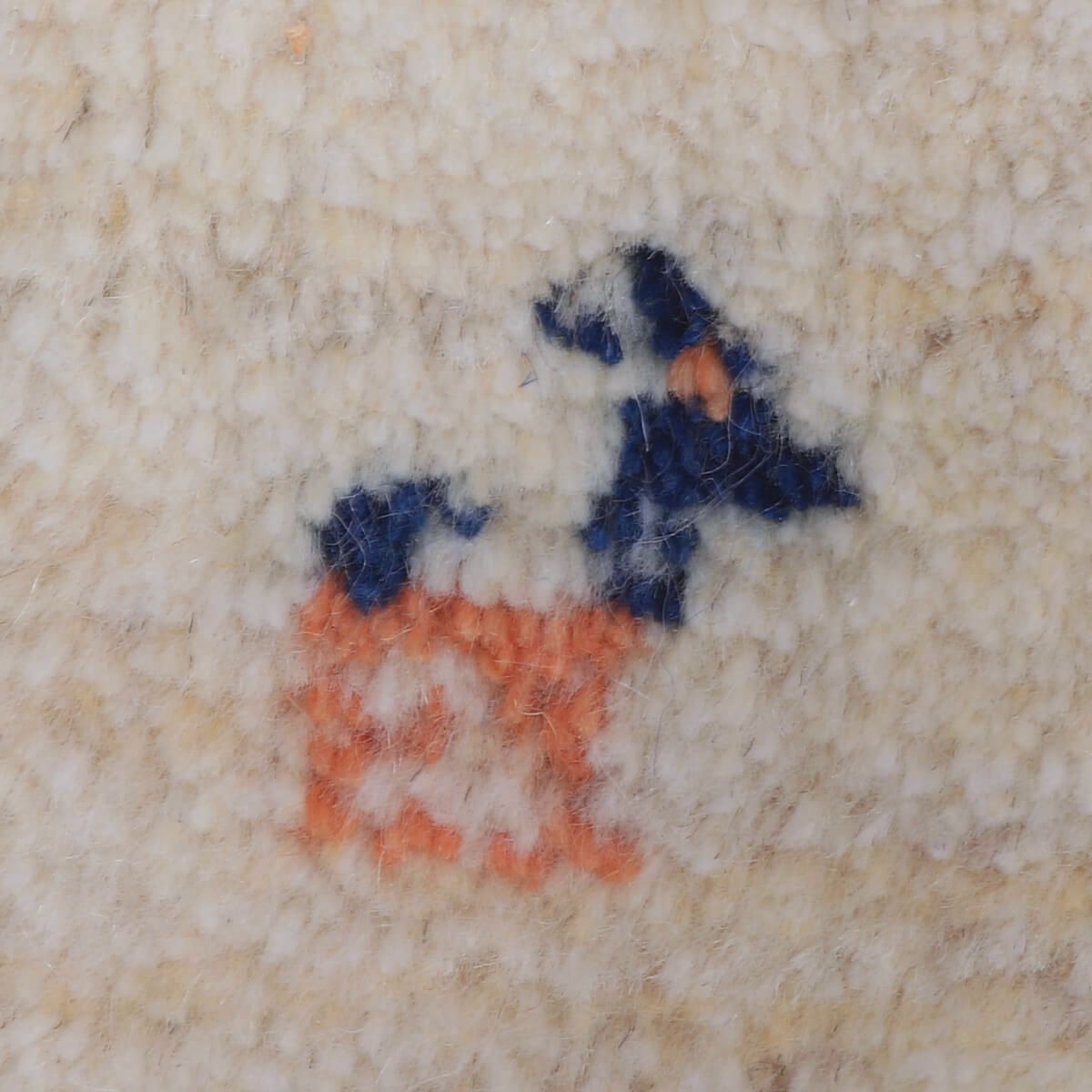 ・中央や四隅に小さな動物や植物モチーフが散りばめられ、素朴な可愛らしさを演出