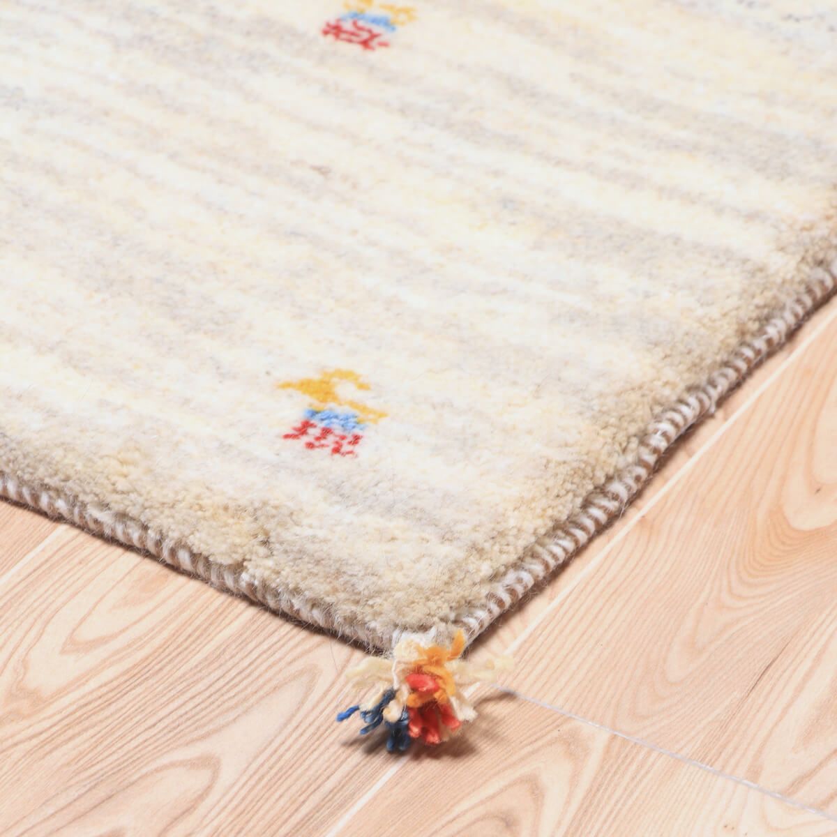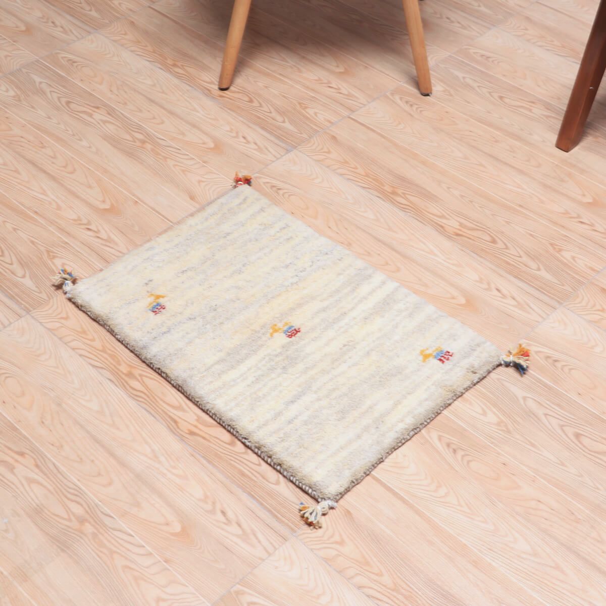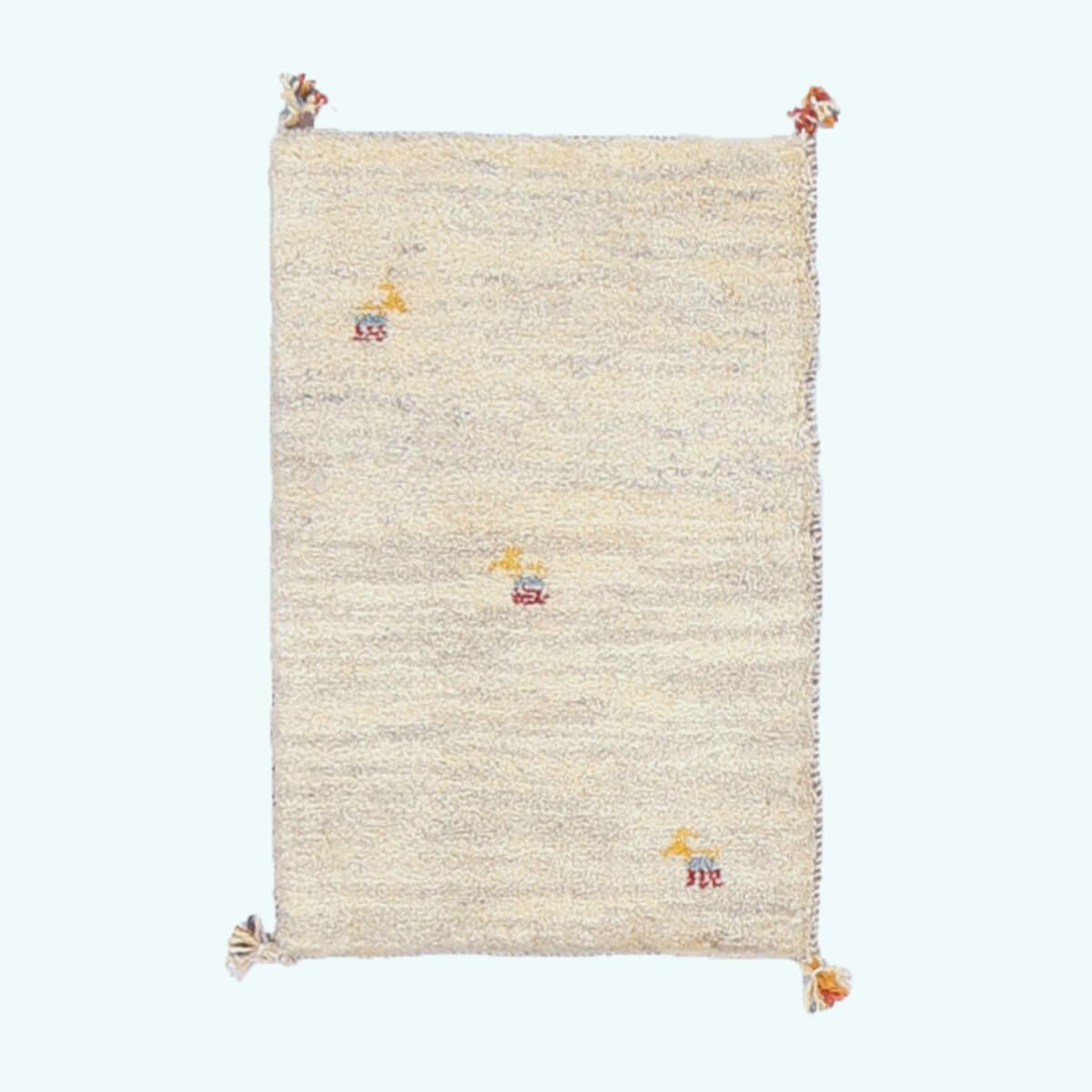 ・中央と両端に小さなモチーフが丁寧に織り込まれ、ギャッベらしい素朴なアクセントに