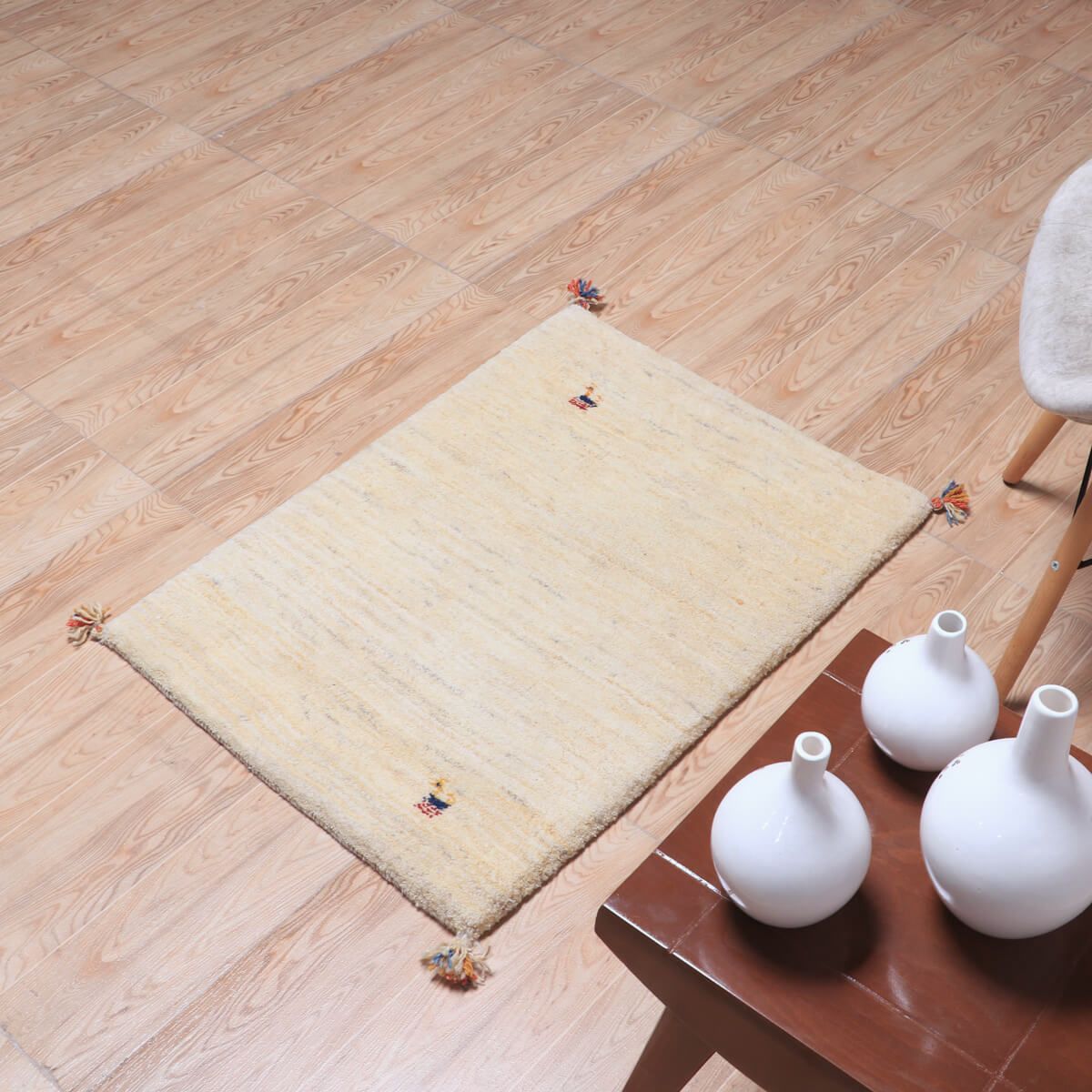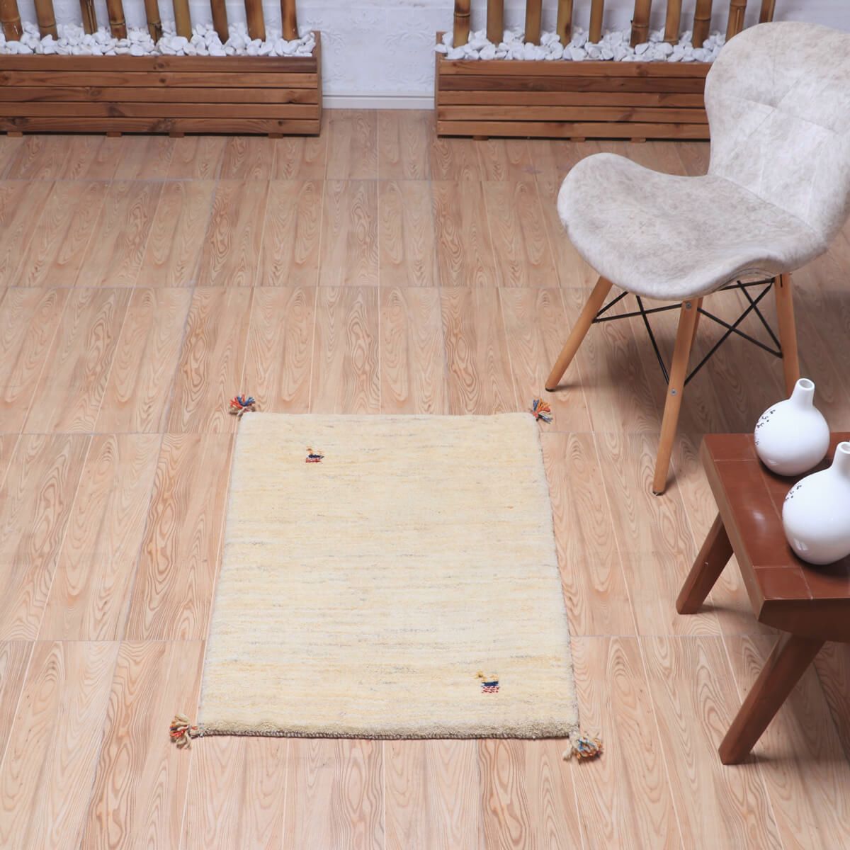 ・余白をたっぷり活かしたシンプルなデザインは、ギャッベならではの素朴さと上品さが魅力です