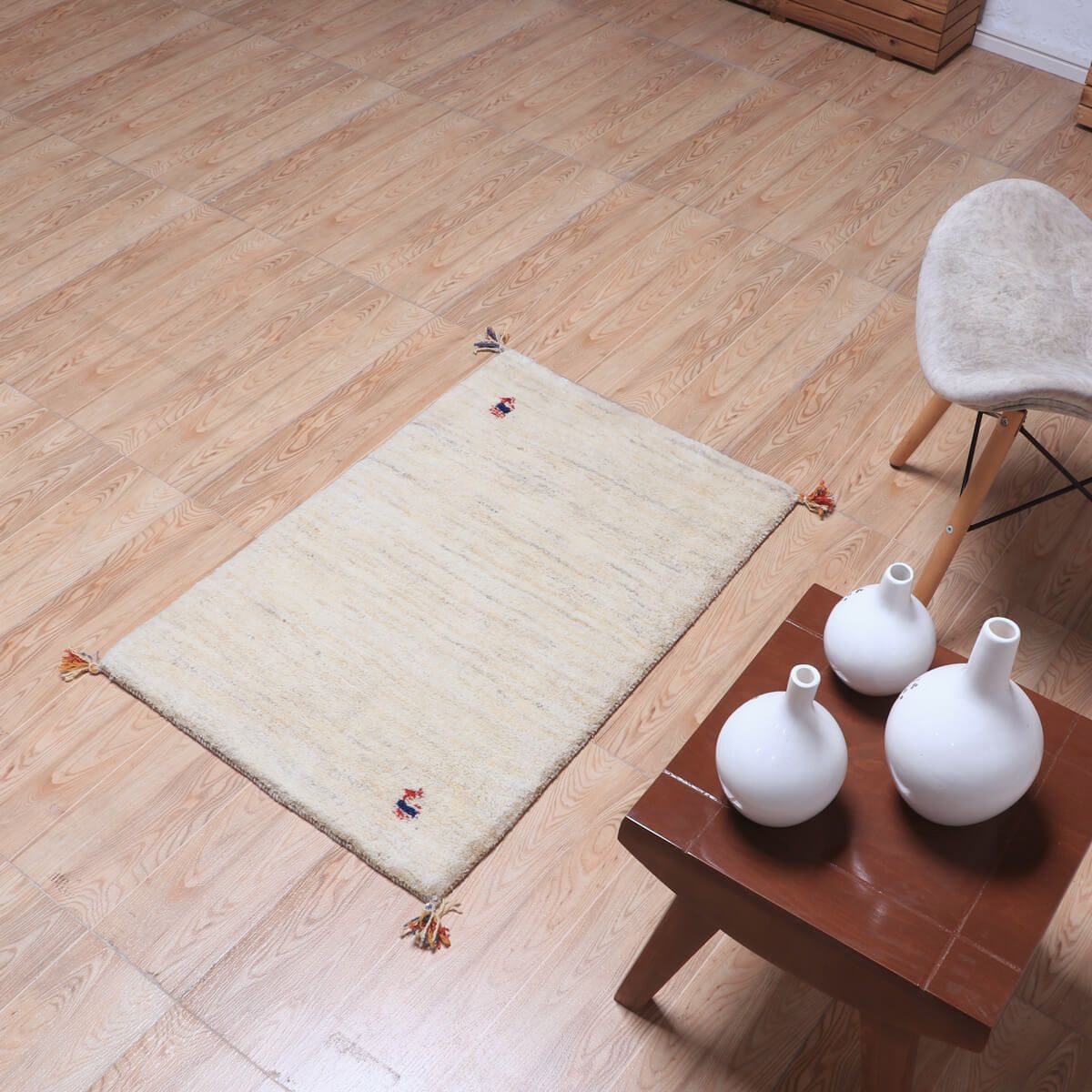 ・余白をたっぷり活かしたシンプルなデザインは、ギャッベならではの素朴さと上品さが魅力です