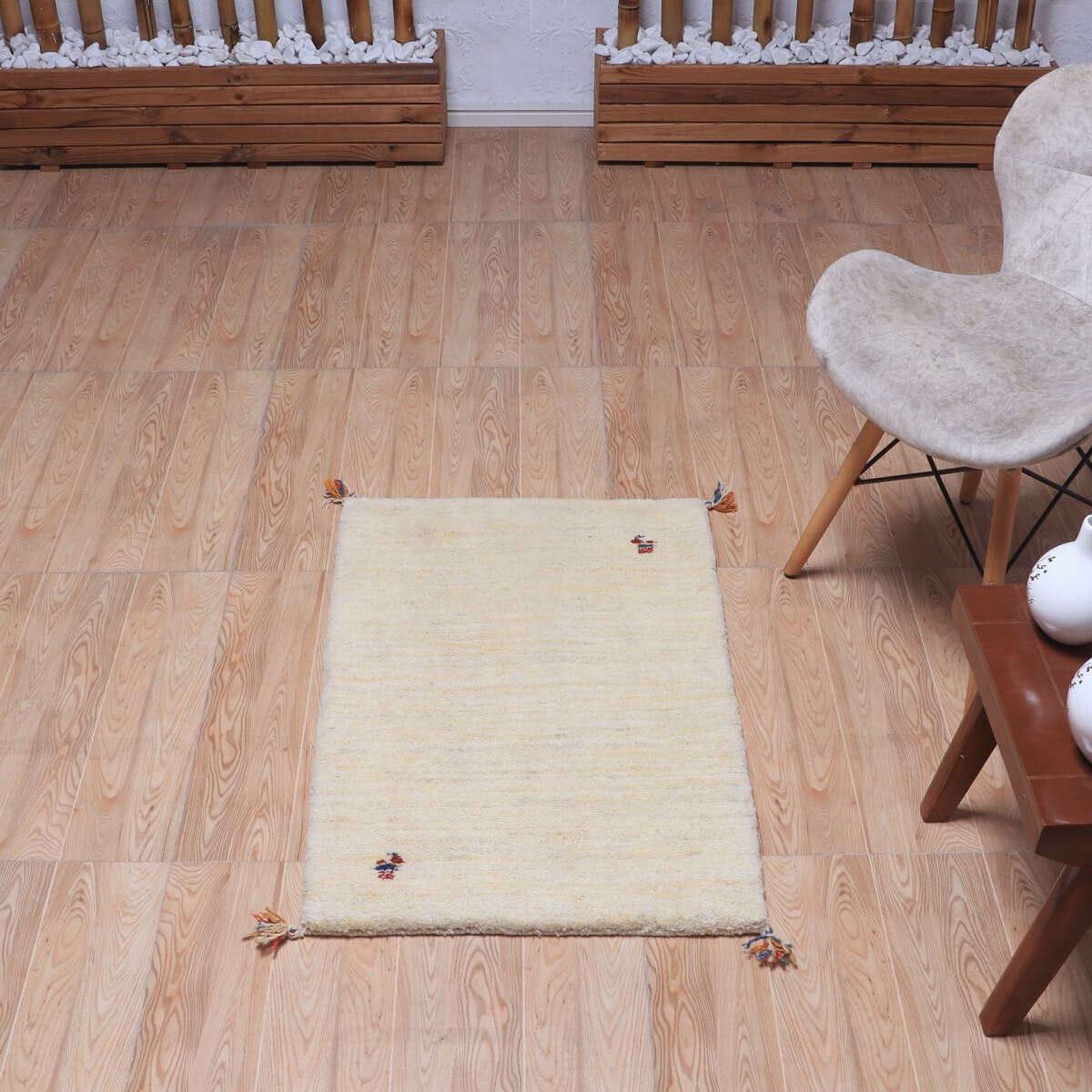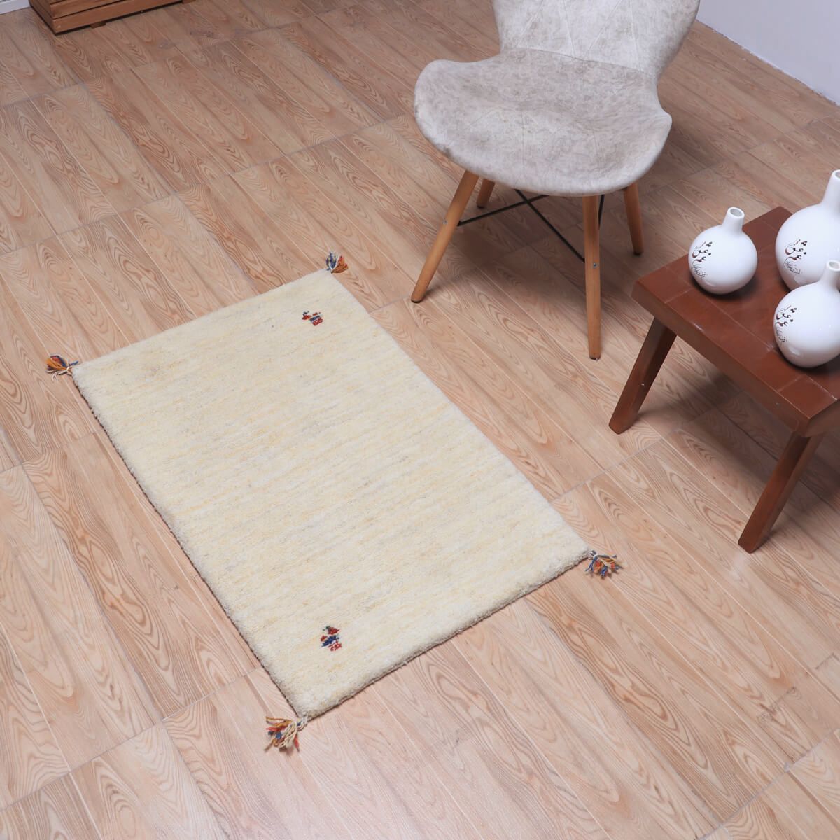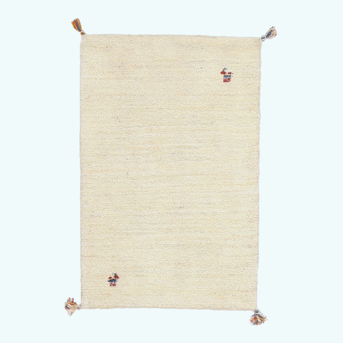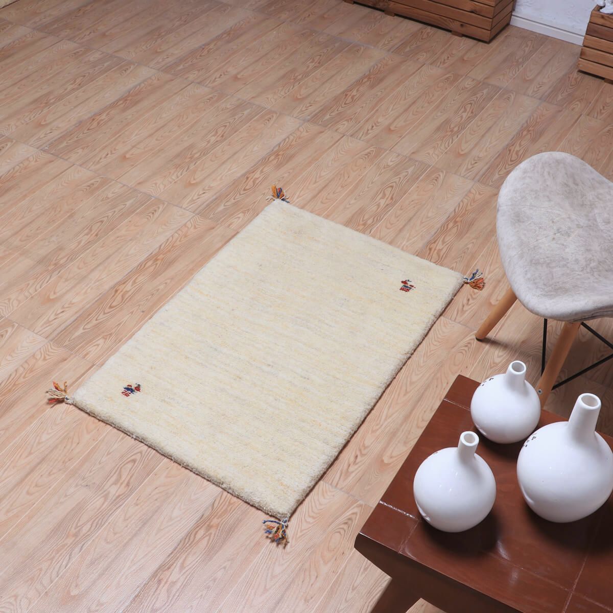 ・余白をたっぷり活かしたシンプルなデザインは、ギャッベならではの素朴さと上品さを感じさせます