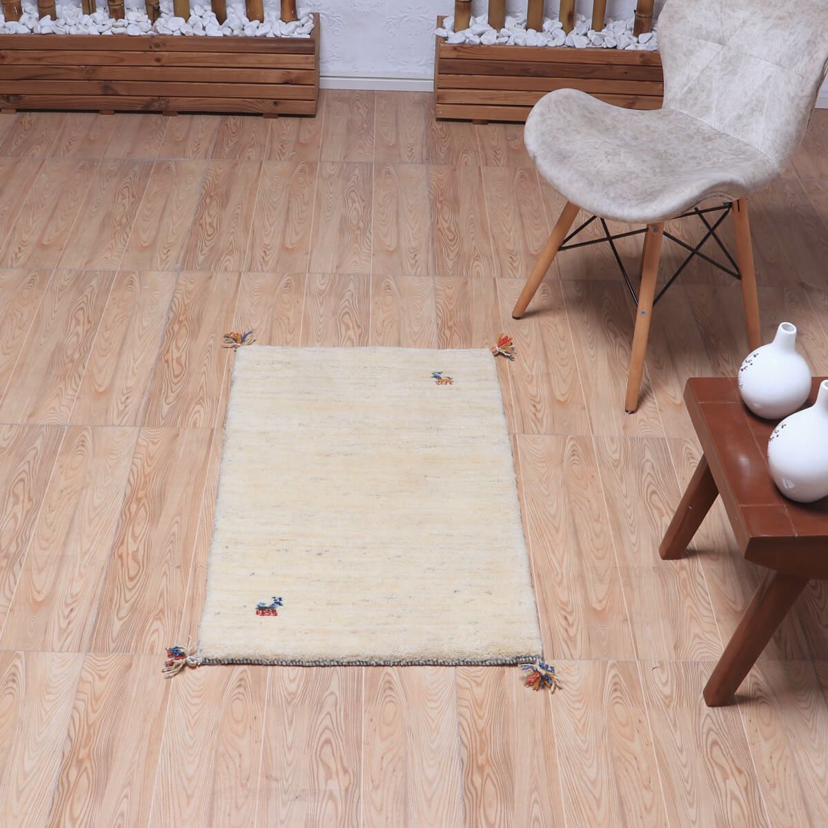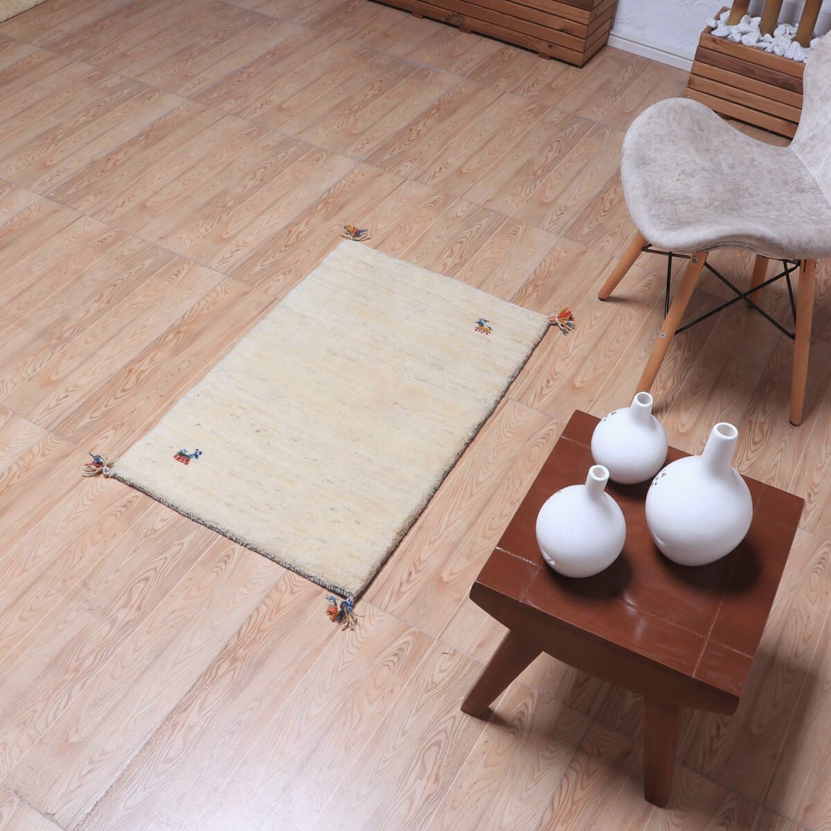 ・余白をたっぷり活かしたシンプルなデザインは、ギャッベならではの素朴さと上品さが魅力です