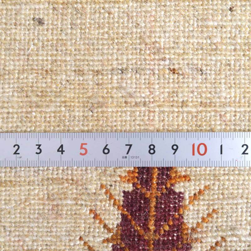 織りは、10cmあたり、およそ40から45目という普通のギャッベの数倍にもなる大変細かなルリバフ。抜け毛が少なく、手触りはふわりと柔らか。踏んだ時やんわりと沈み込む踏み心地です。腕の良い選りすぐられた織り子だけが手掛ける極上の手仕事です。
