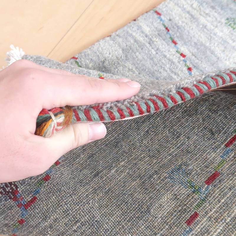 織りは、10cmあたり、およそ40から45目という普通のギャッベの数倍にもなる大変細かなルリバフ。抜け毛が少なく、手触りはふわりと柔らか。踏んだ時やんわりと沈み込む踏み心地です。腕の良い選りすぐられた織り子だけが手掛ける極上の手仕事です。