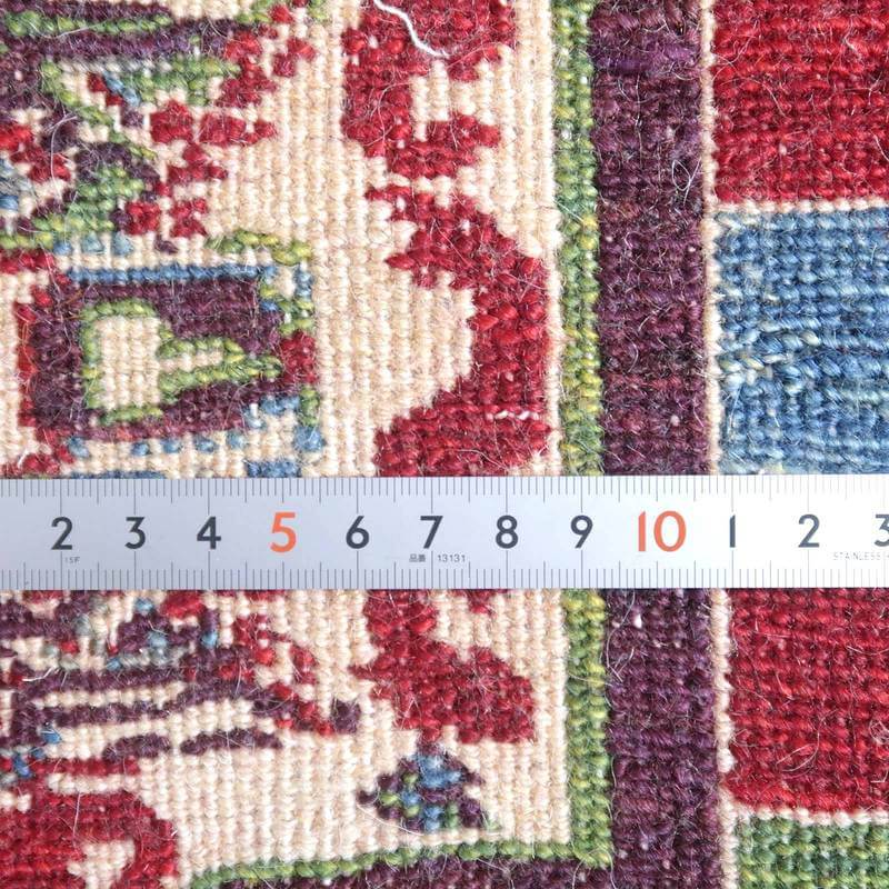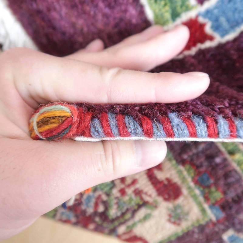 織りは、10cmあたり、およそ40から45目という普通のギャッベの数倍にもなる大変細かなルリバフ。抜け毛が少なく、手触りはふわりと柔らか。踏んだ時やんわりと沈み込む踏み心地です。腕の良い選りすぐられた織り子だけが手掛ける極上の手仕事です。