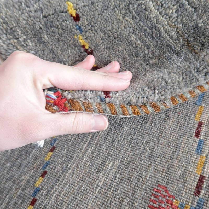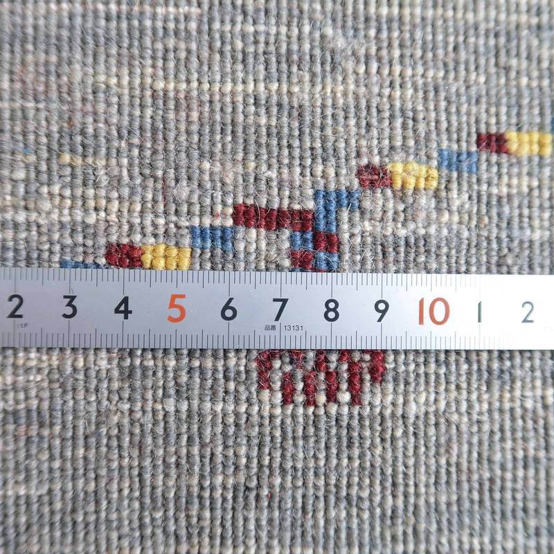 織りは、10cmあたり、およそ40から45目という普通のギャッベの数倍にもなる大変細かなルリバフ。抜け毛が少なく、手触りはふわりと柔らか。踏んだ時やんわりと沈み込む踏み心地です。腕の良い選りすぐられた織り子だけが手掛ける極上の手仕事です。