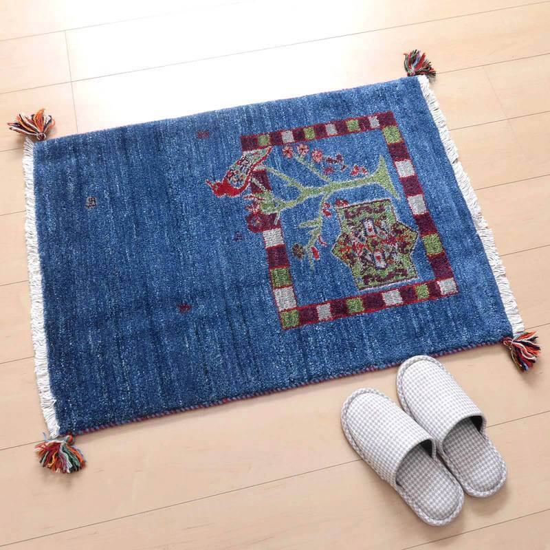 プレミアムギャッベ/ホシナマイ(ルリバフ) 84×61cm(HSS-71836)