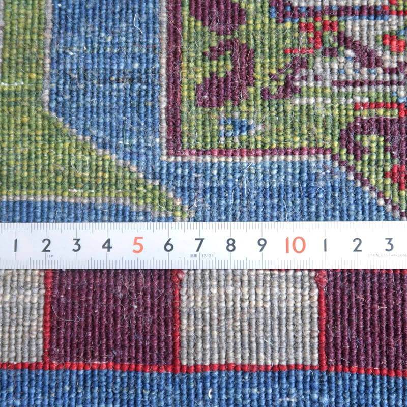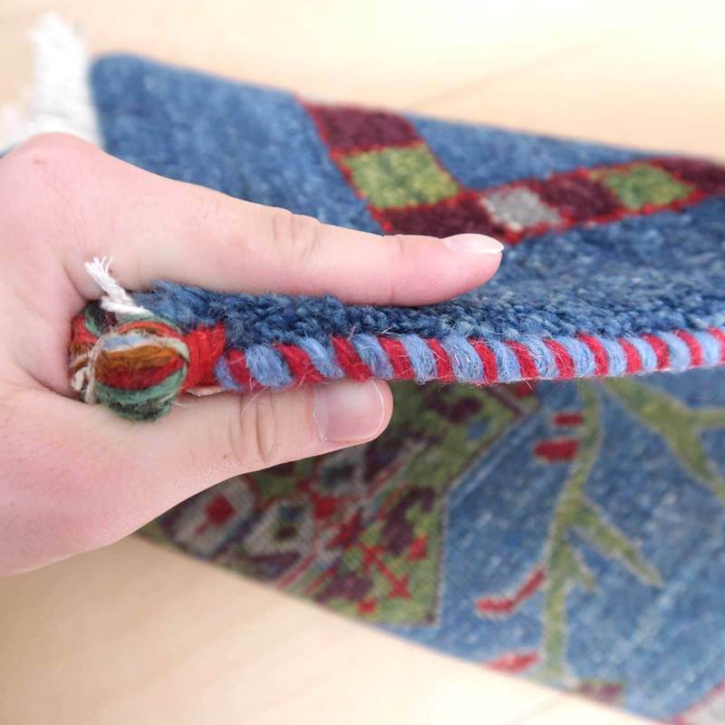 織りは、10cmあたり、およそ40から45目という普通のギャッベの数倍にもなる大変細かなルリバフ。抜け毛が少なく、手触りはふわりと柔らか。踏んだ時やんわりと沈み込む踏み心地です。腕の良い選りすぐられた織り子だけが手掛ける極上の手仕事です。