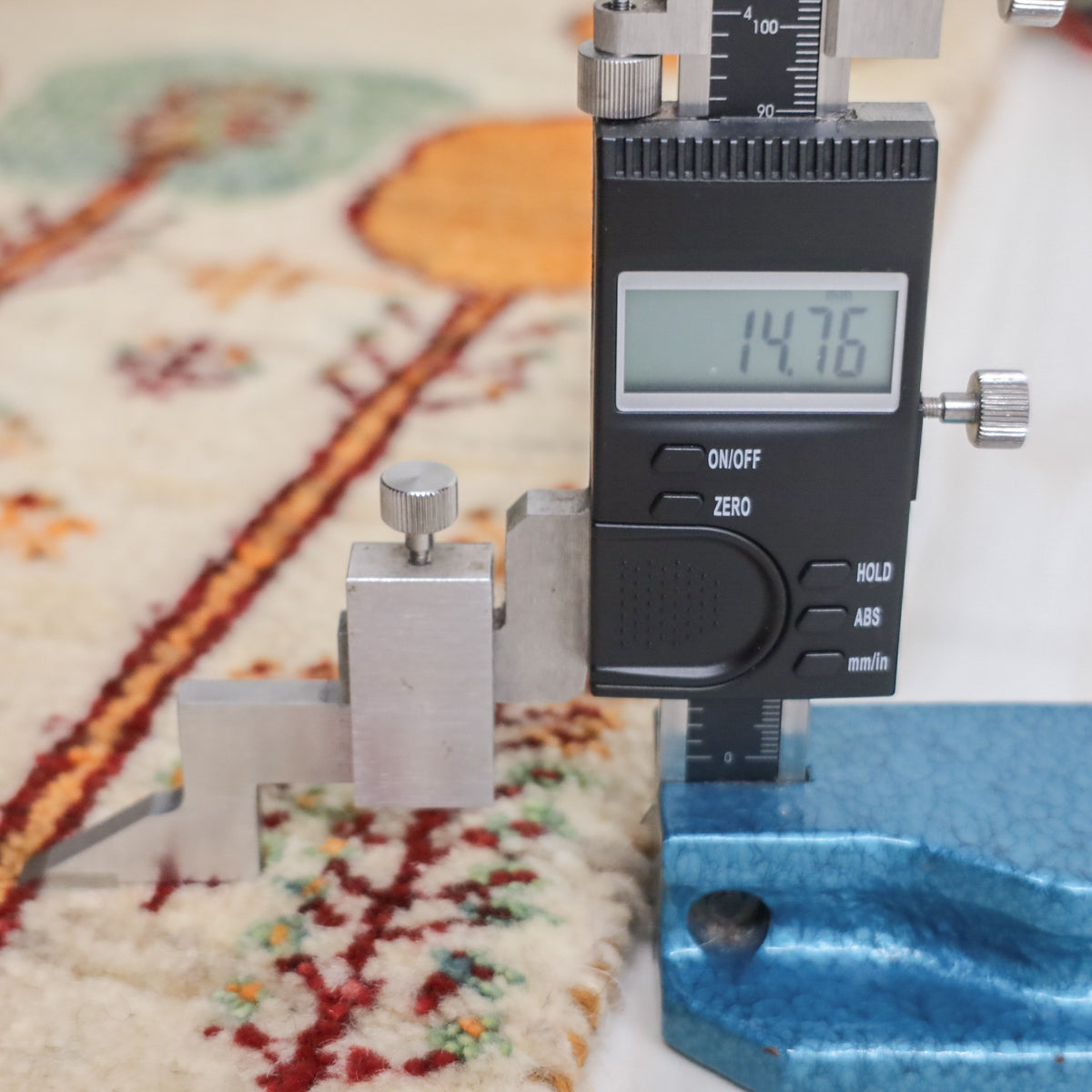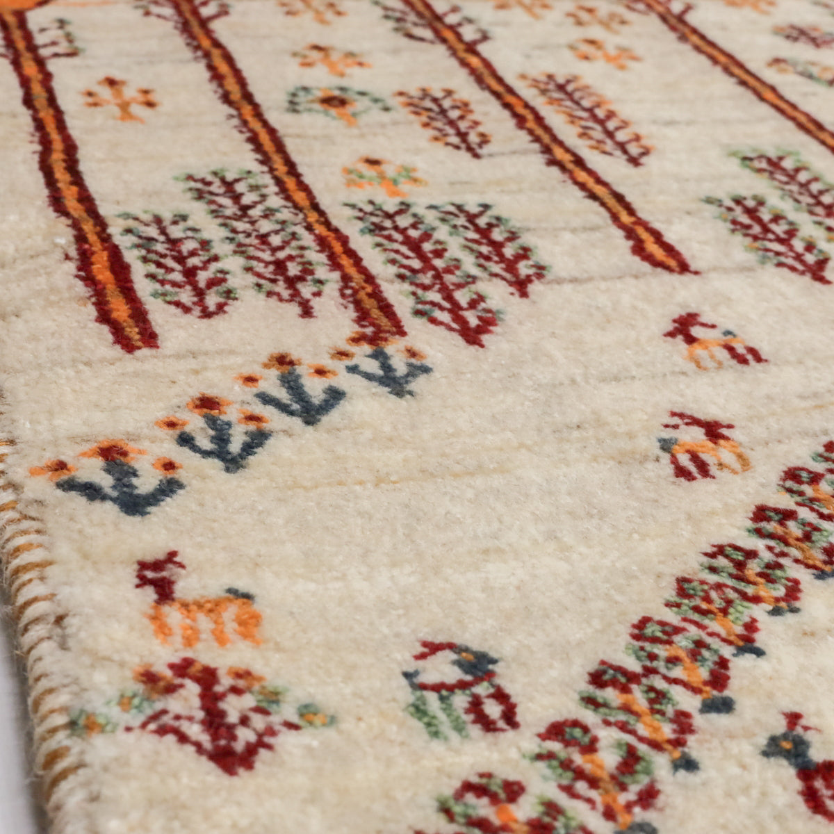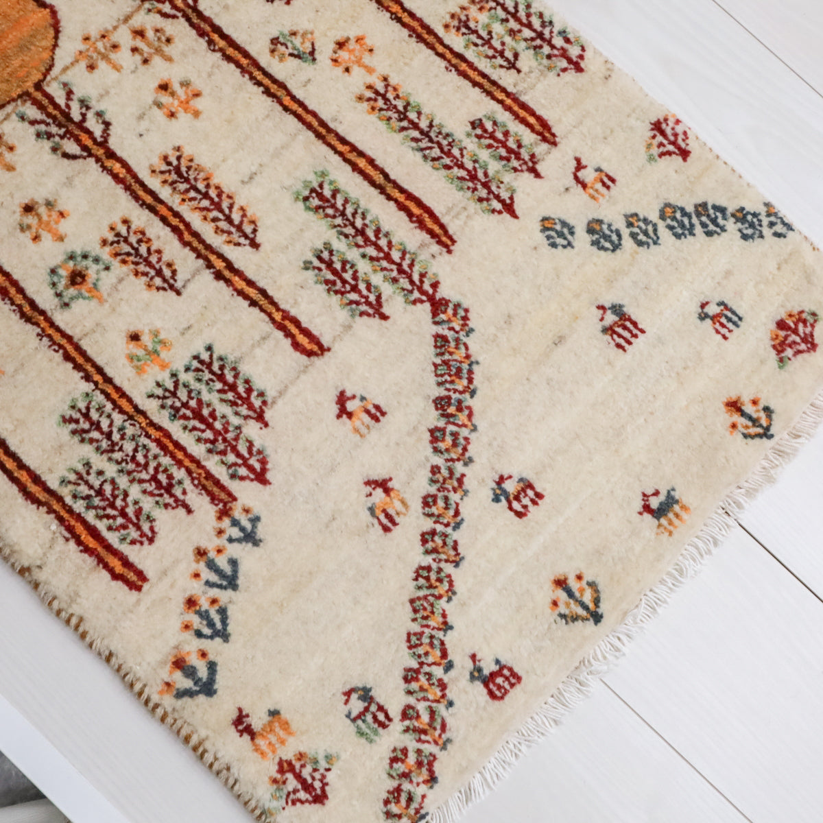 ルリ族によって織られる「ルリバフ」というギャッベは、通常のギャッベの織り目よりもはるかに細かく織られています。ルリバフは高い技術を持つ選ばれた織り子だけが手掛けることができ、デザインは細やかで柔らかなウール素材、やんわりと沈み込む快適な踏み心地のハイランクな上質ギャッベです。