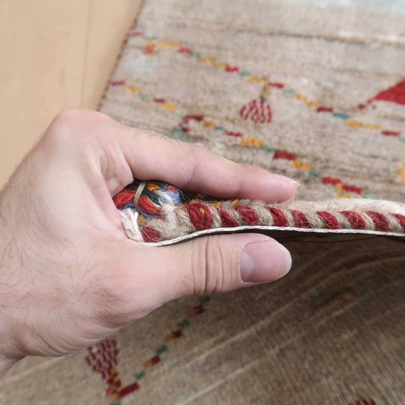 織りは、10cmあたり、およそ40から45目という普通のギャッベの数倍にもなる大変細かなルリバフ。抜け毛が少なく、手触りはふわりと柔らか。踏んだ時やんわりと沈み込む踏み心地です。腕の良い選りすぐられた織り子だけが手掛ける極上の手仕事です。