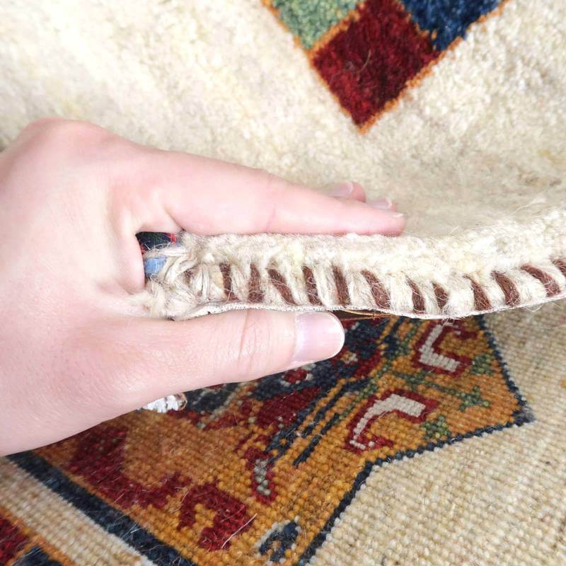 織りは、10cmあたり、およそ40から45目という普通のギャッベの数倍にもなる大変細かなルリバフ。抜け毛が少なく、手触りはふわりと柔らか。踏んだ時やんわりと沈み込む踏み心地です。腕の良い選りすぐられた織り子だけが手掛ける極上の手仕事です。