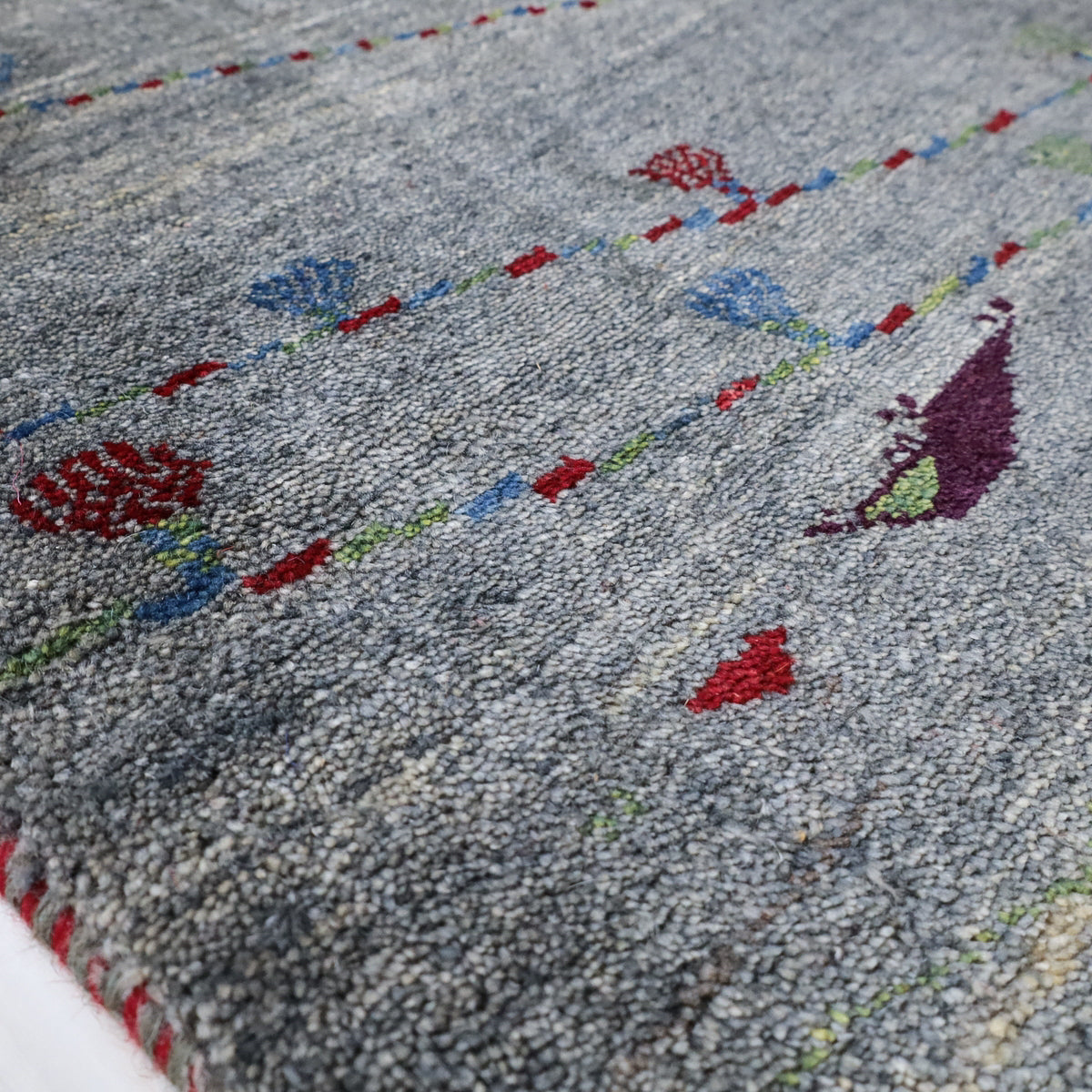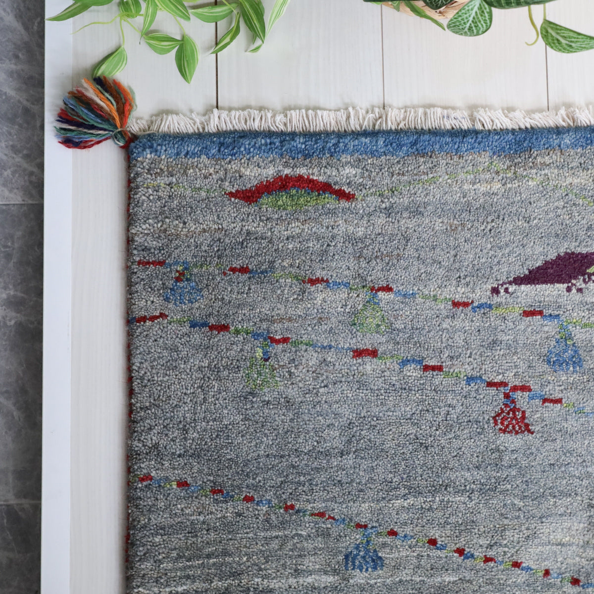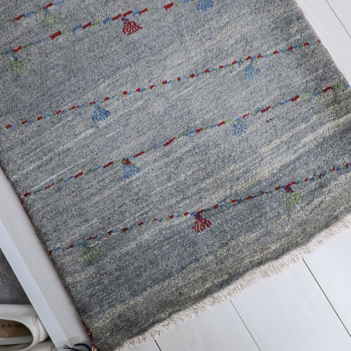 ルリ族によって織られる「ルリバフ」というギャッベは、通常のギャッベの織り目よりもはるかに細かく織られています。ルリバフは高い技術を持つ選ばれた織り子だけが手掛けることができ、デザインは細やかで柔らかなウール素材、やんわりと沈み込む快適な踏み心地のハイランクな上質ギャッベです。